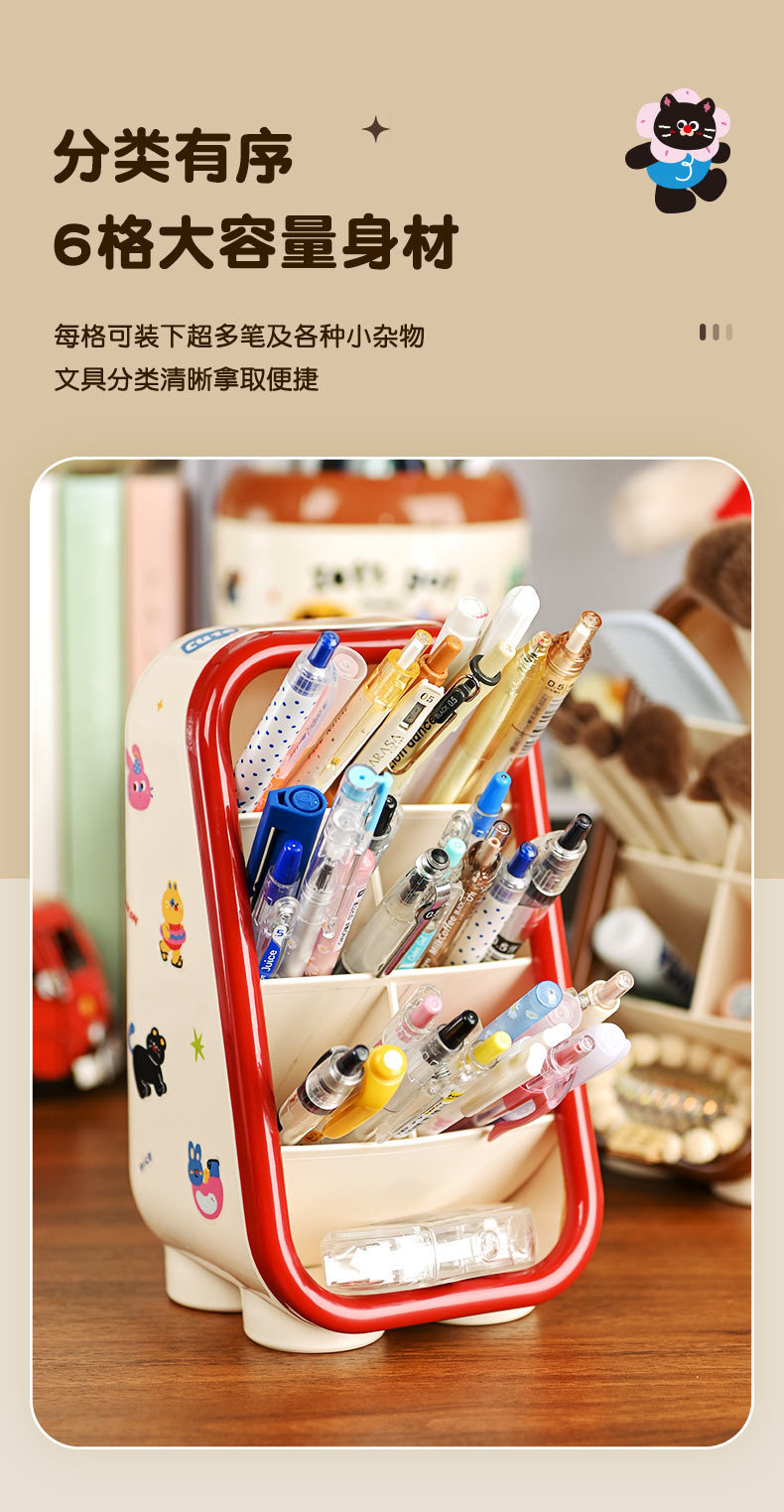 • 3301#3칸 카툰 연필꽂이 빨간색 + 스티커 1장