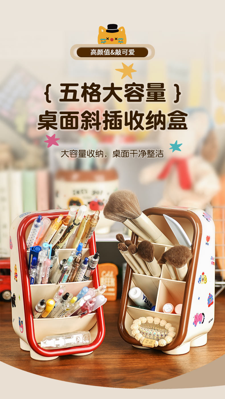 도파민 데스크톱 경사 문구 화장품 보관 상자 귀여운 만화 펜 컨테이너 학생 사무실 펜 상자 Ins 여성스토어 가기