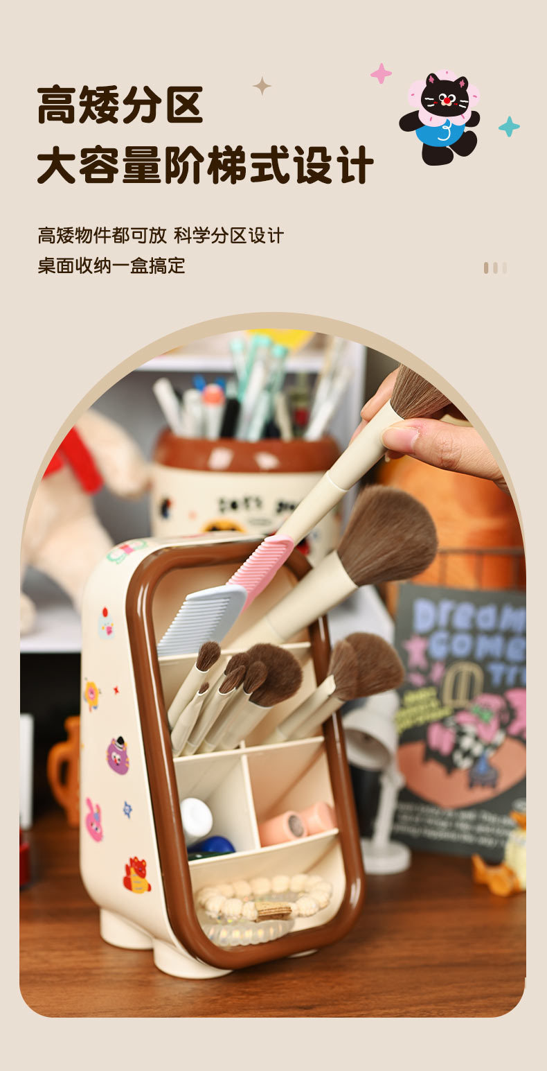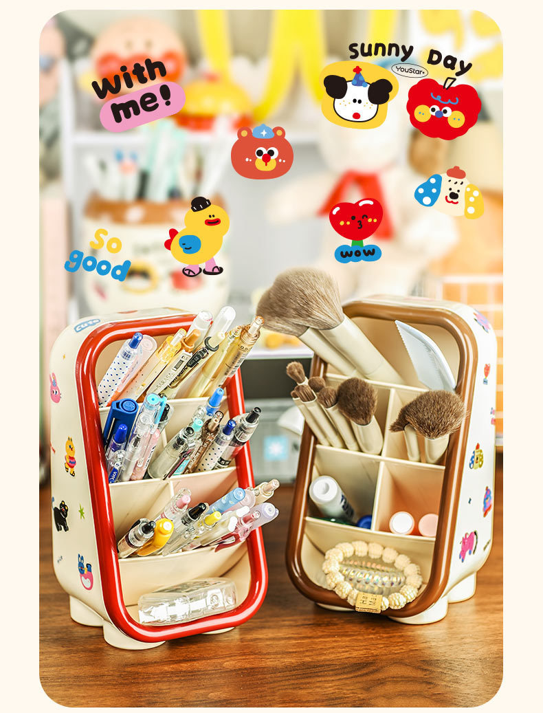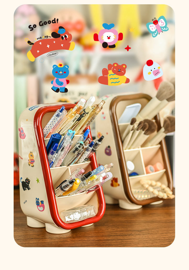 도파민 데스크톱 경사 문구 화장품 보관 상자 귀여운 만화 펜 컨테이너 학생 사무실 펜 상자 Ins 여성