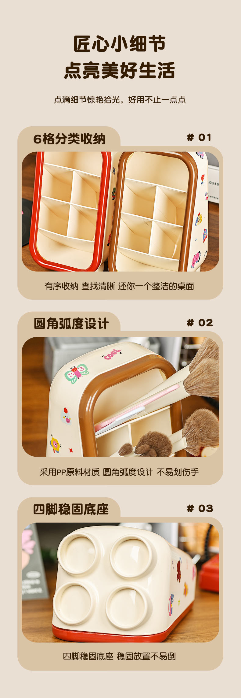 • 3301 # 3칸 카툰 연필꽂이 브라운 + 스티커 1장