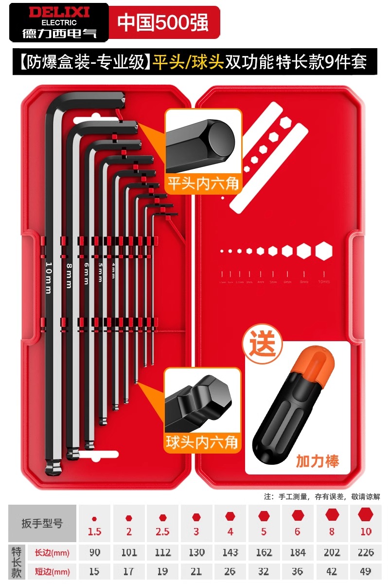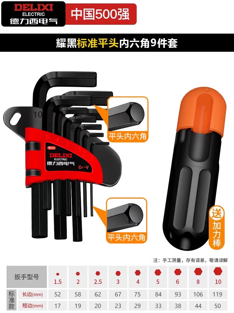 • Yaohei 표준 플랫 헤드 육각형 9개 세트(파워 스틱 포함)
