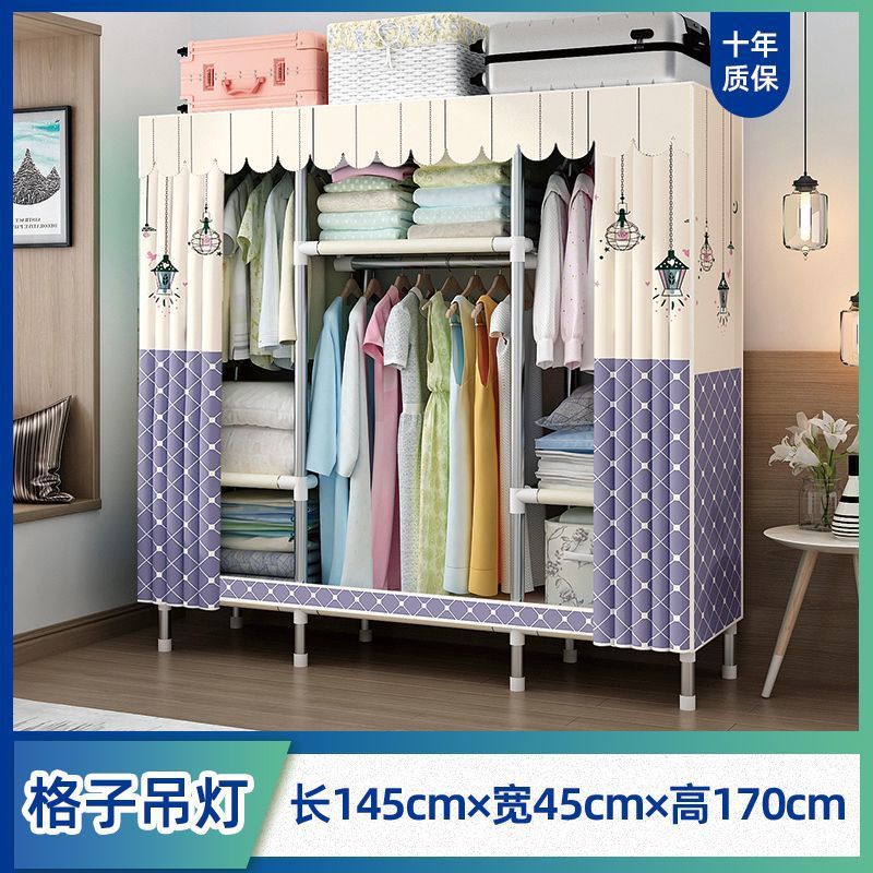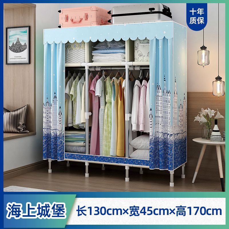 새로운 간단한 옷장 보관 랙 홈 침실 천 옷장 강철 파이프 옷장 옷장 임대