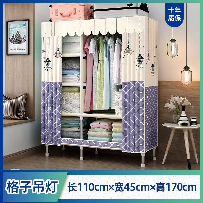 새로운 간단한 옷장 보관 랙 홈 침실 천 옷장 강철 파이프 옷장 옷장 임대스토어 가기