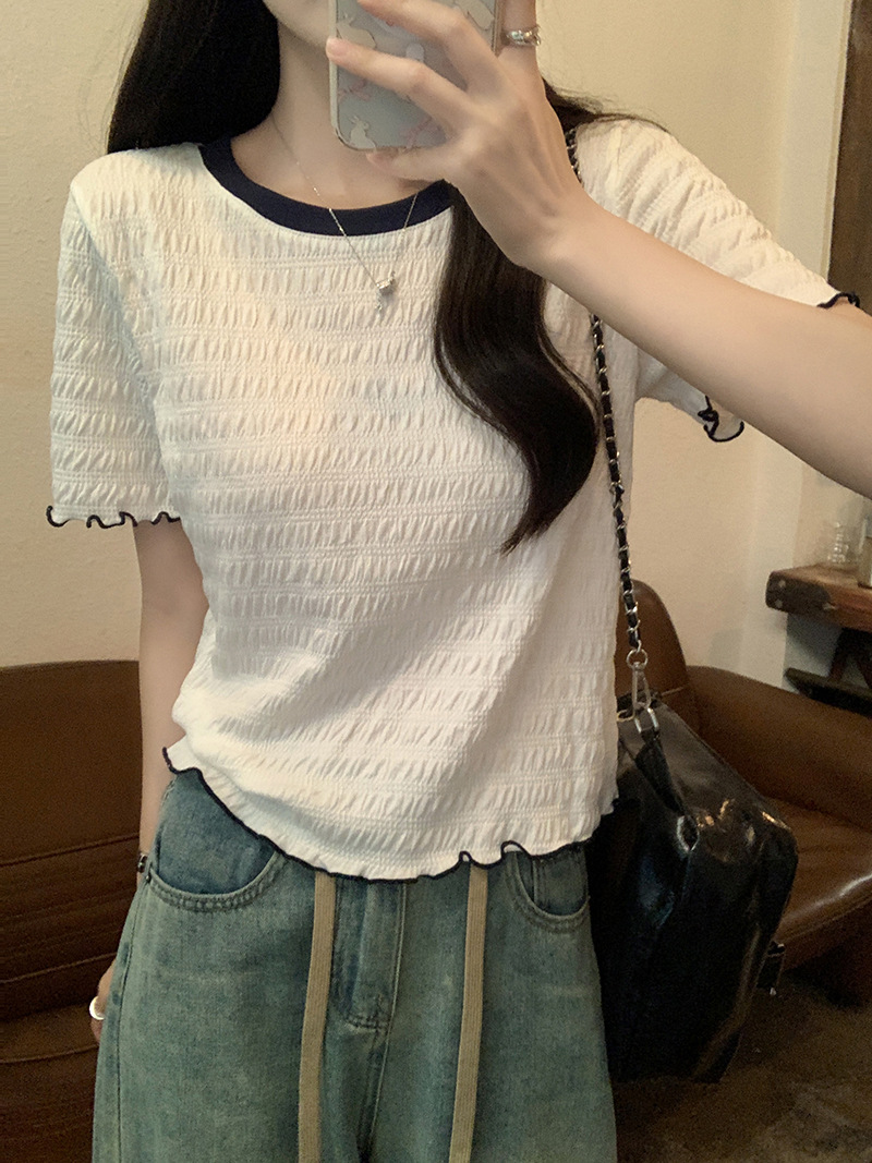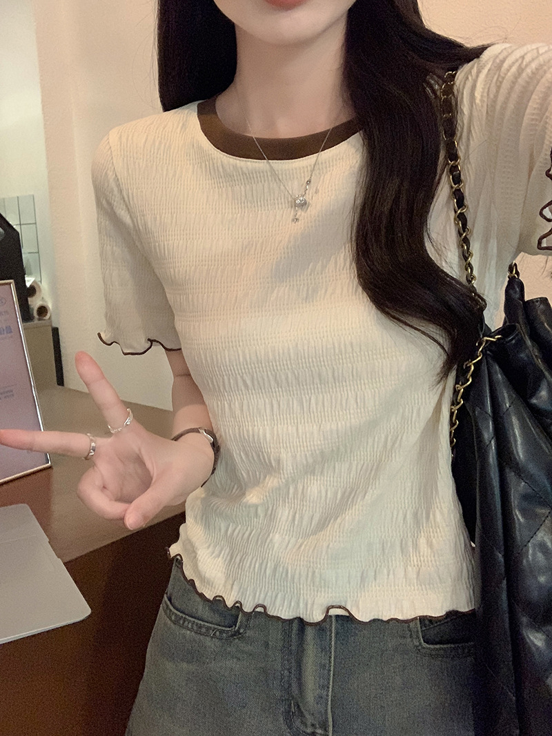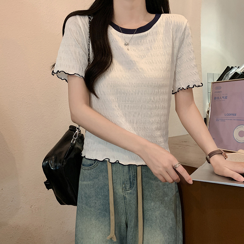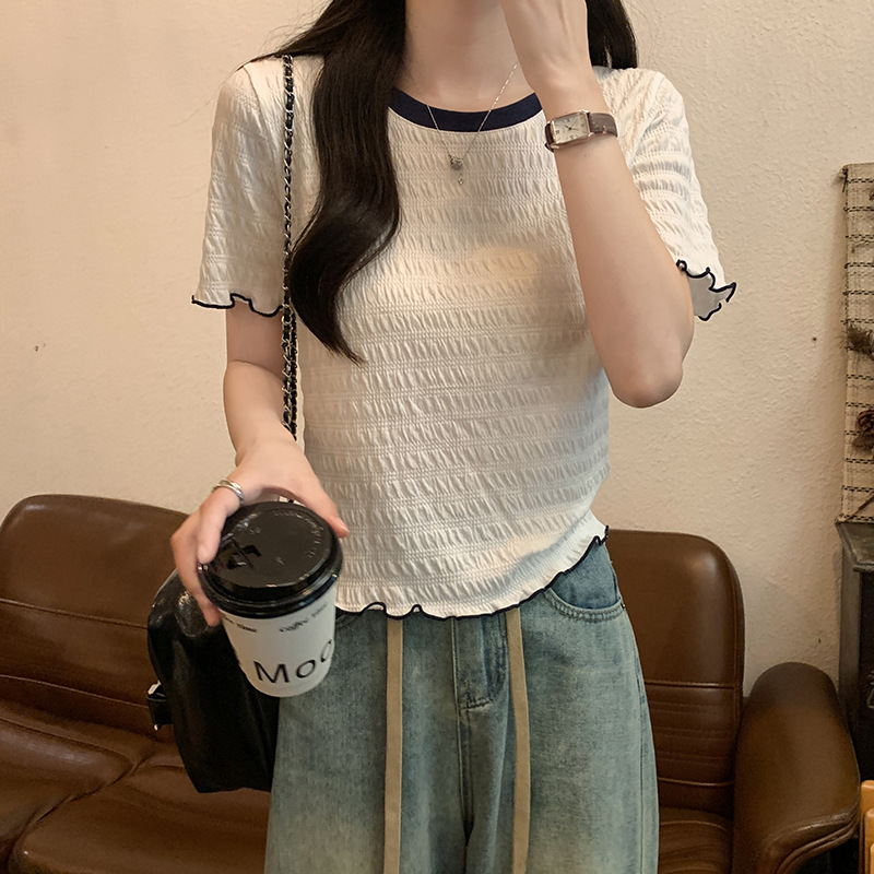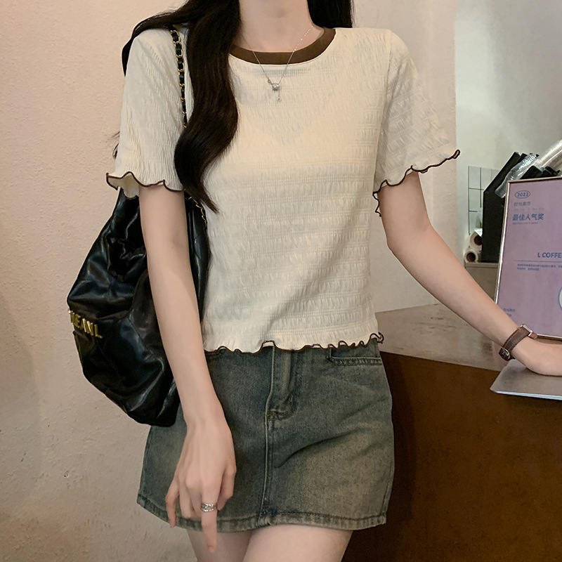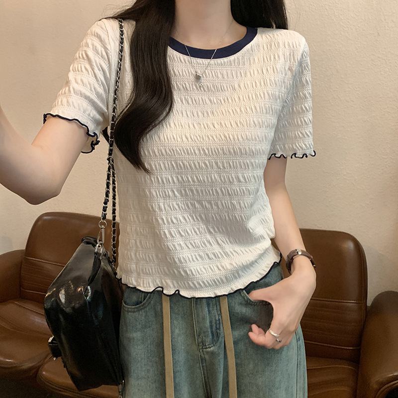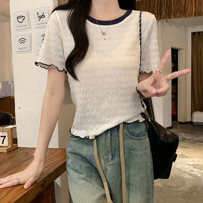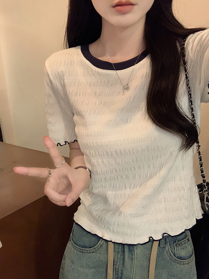 여성을위한 쉬폰 둥근 목 반팔 티셔츠 여름 2025 새로운 스타일 슬림 피트 짧은 탑 인 슈퍼 핫