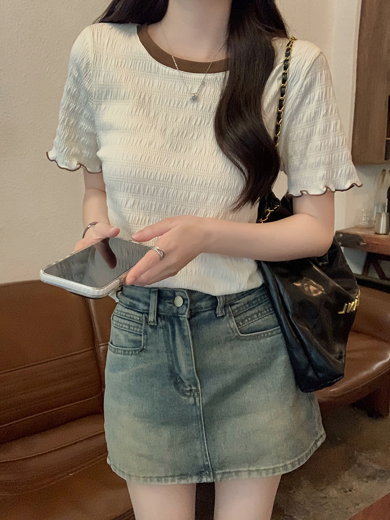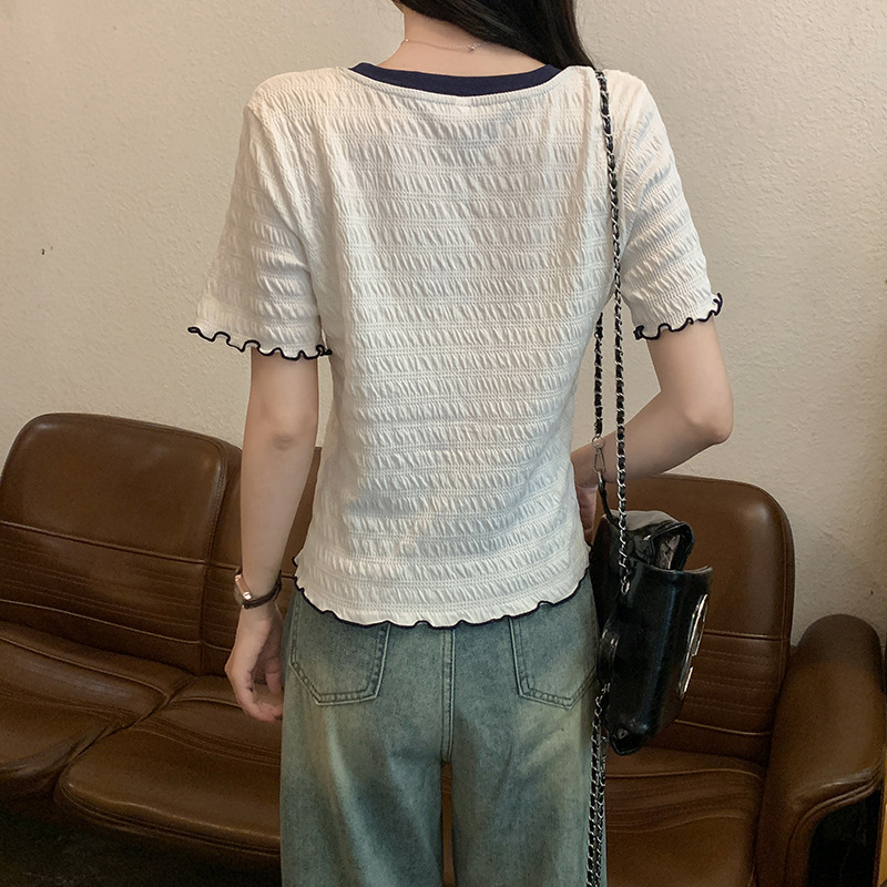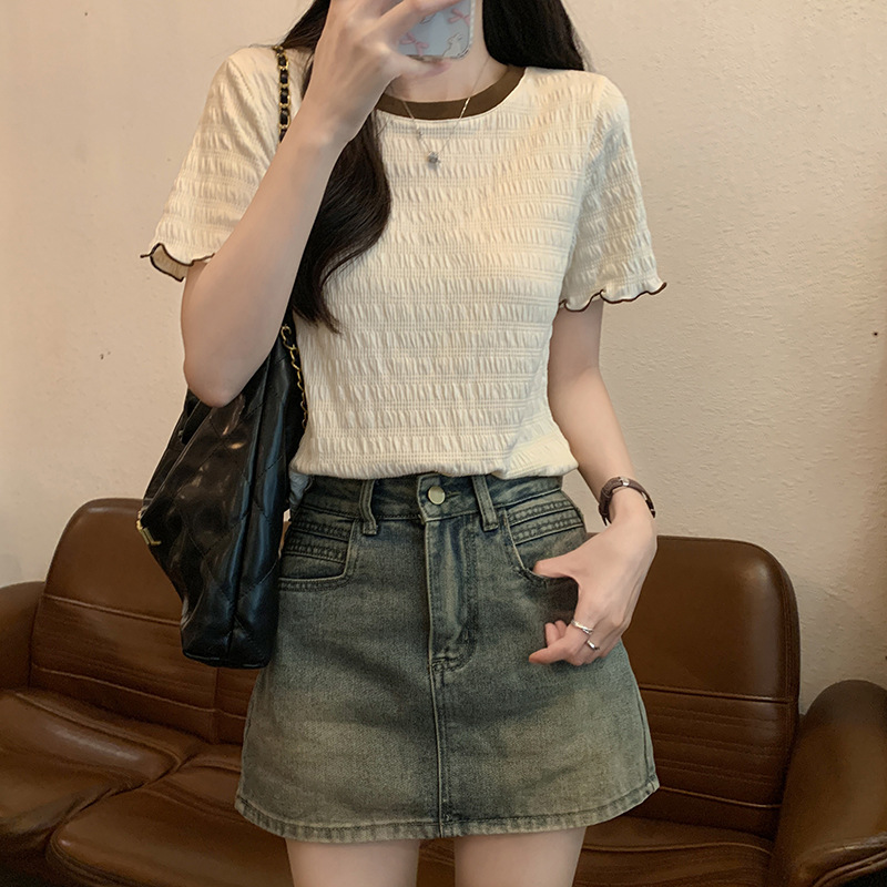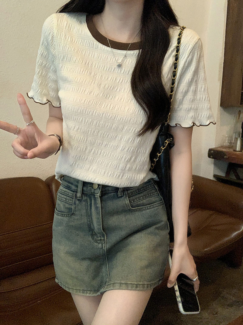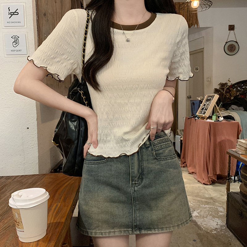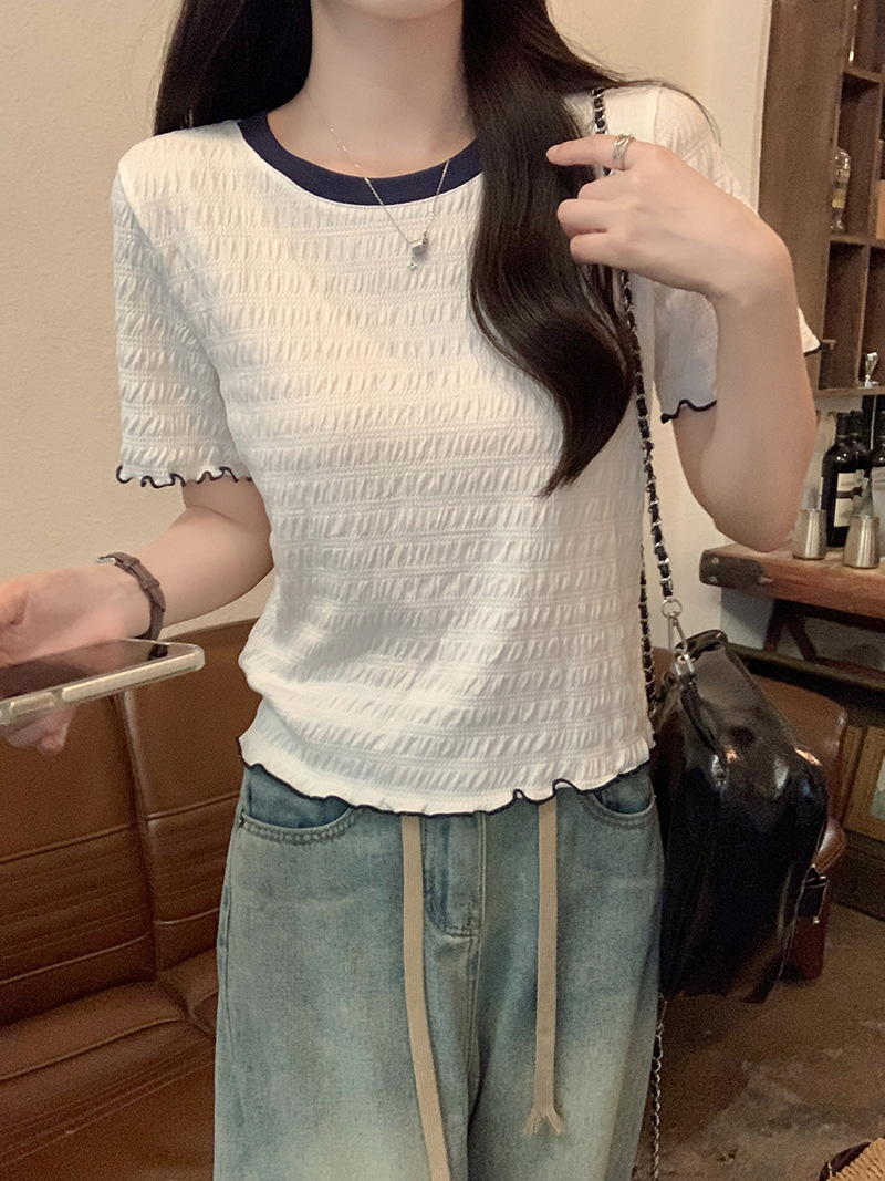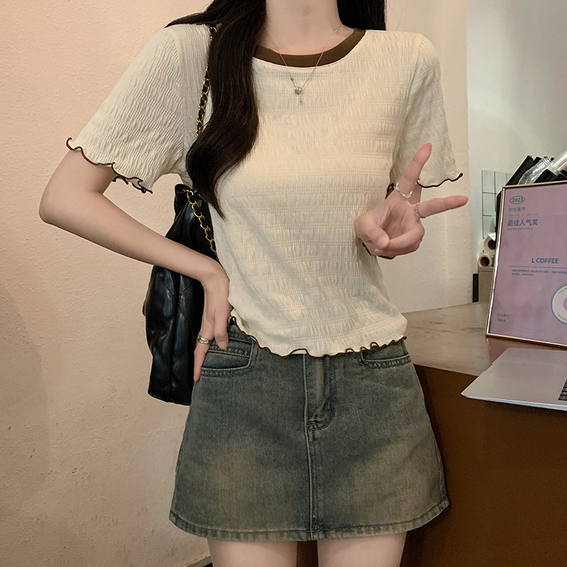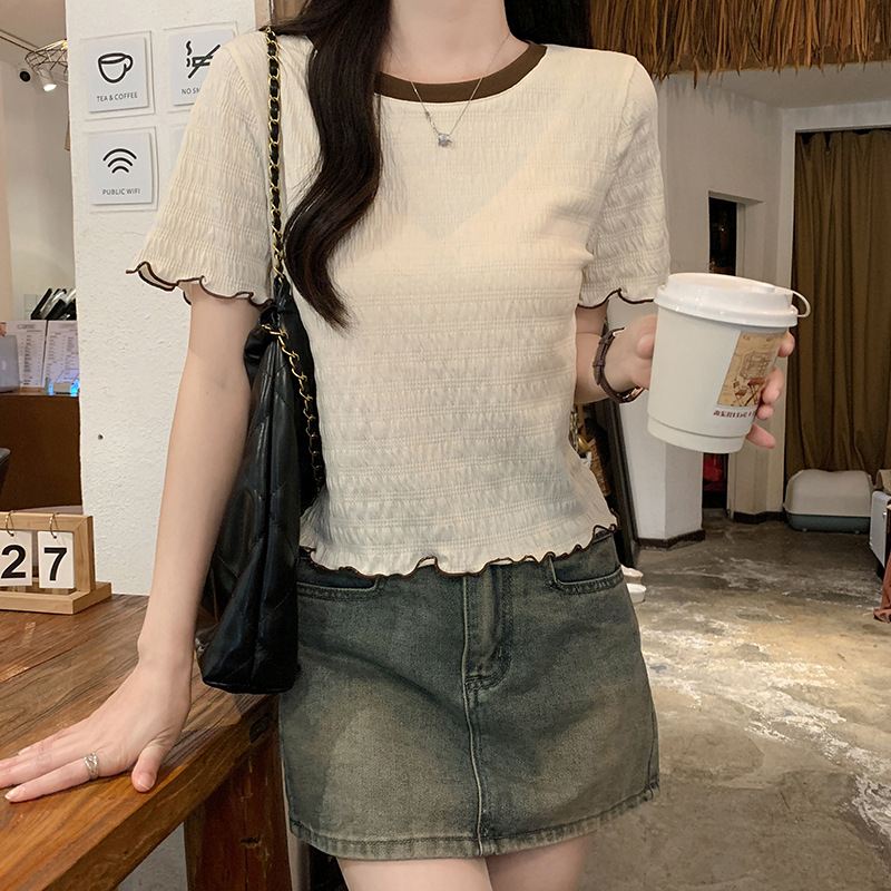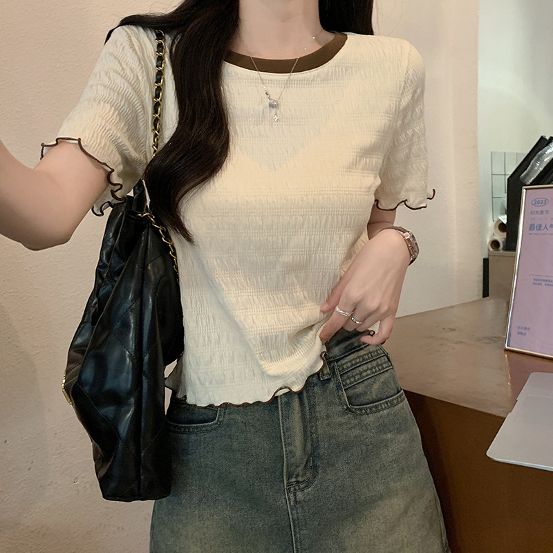 여성을위한 쉬폰 둥근 목 반팔 티셔츠 여름 2025 새로운 스타일 슬림 피트 짧은 탑 인 슈퍼 핫