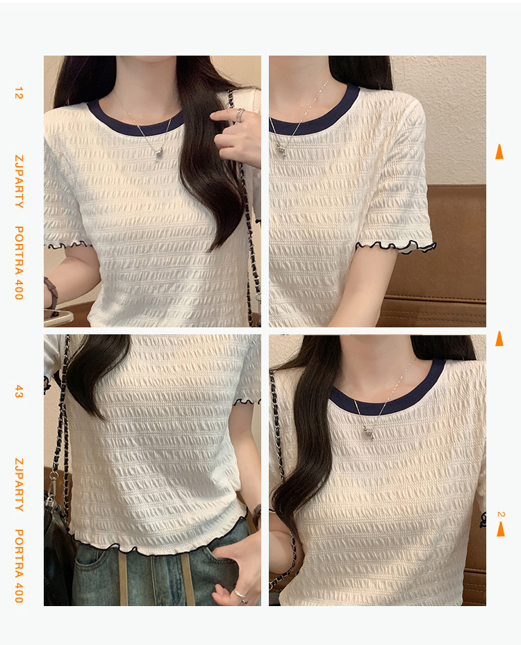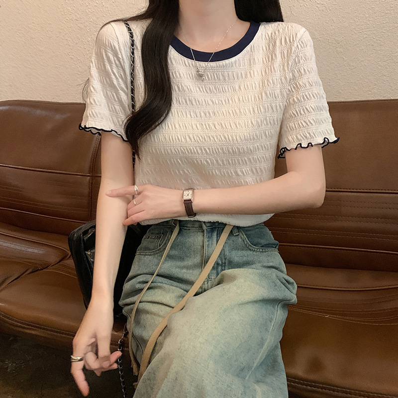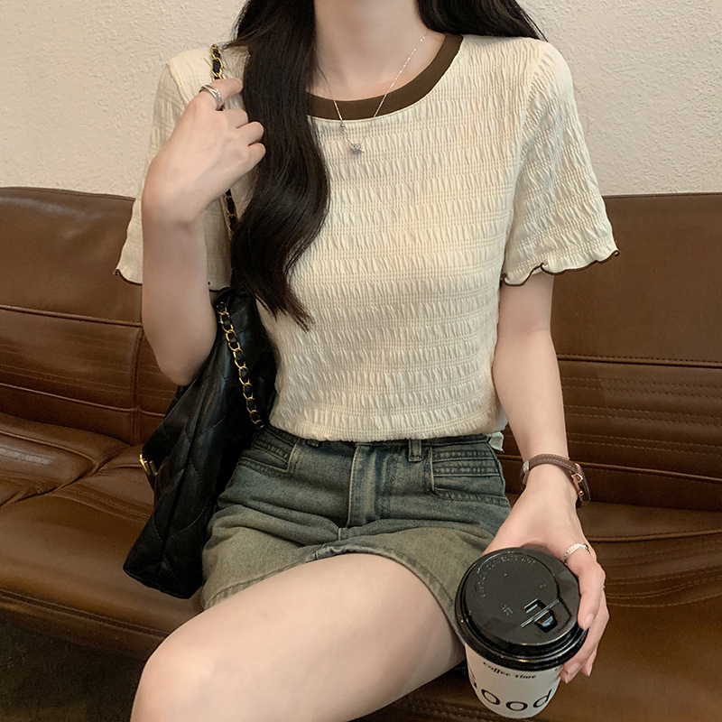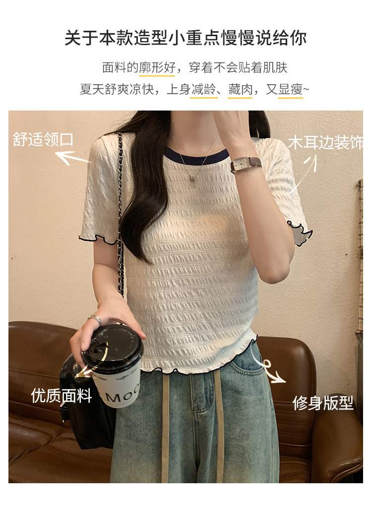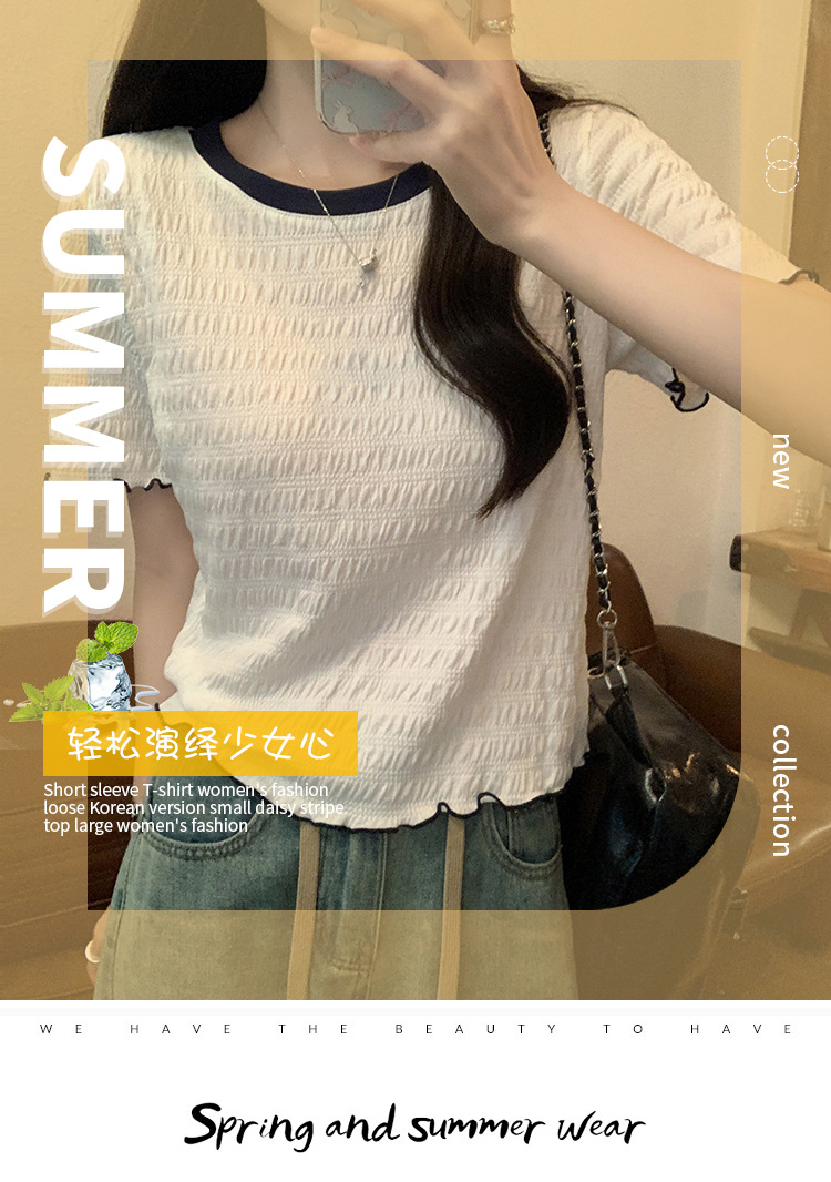 여성을위한 쉬폰 둥근 목 반팔 티셔츠 여름 2025 새로운 스타일 슬림 피트 짧은 탑 인 슈퍼 핫스토어 가기
