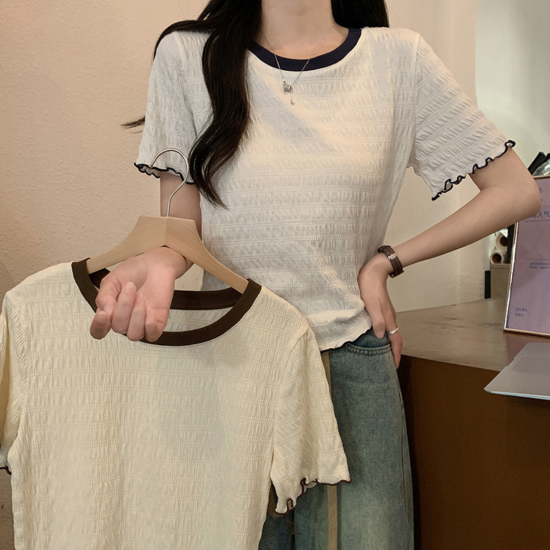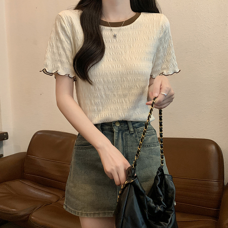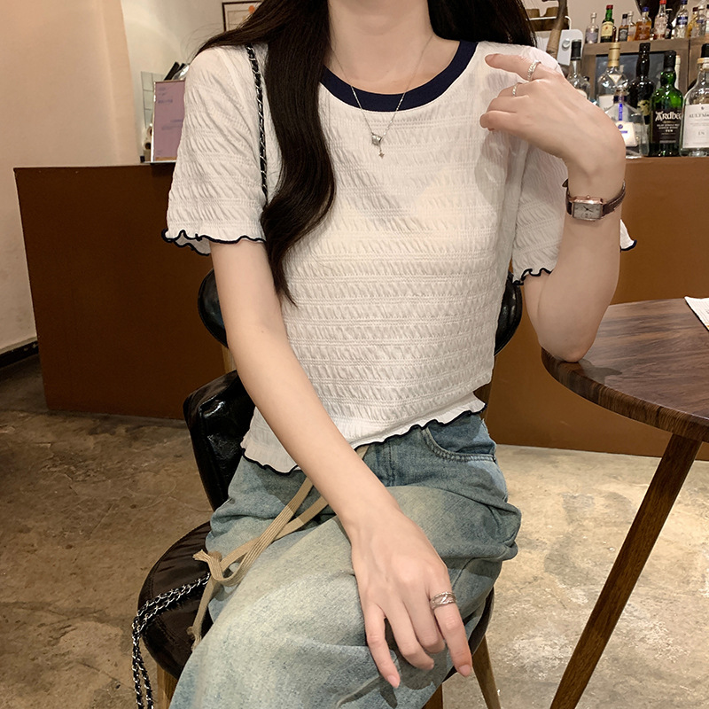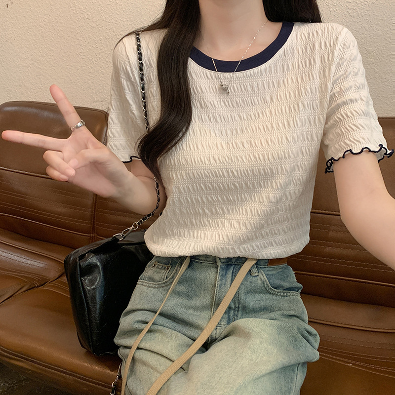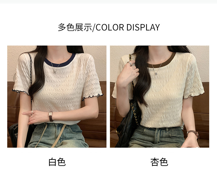 여성을위한 쉬폰 둥근 목 반팔 티셔츠 여름 2025 새로운 스타일 슬림 피트 짧은 탑 인 슈퍼 핫스토어 가기