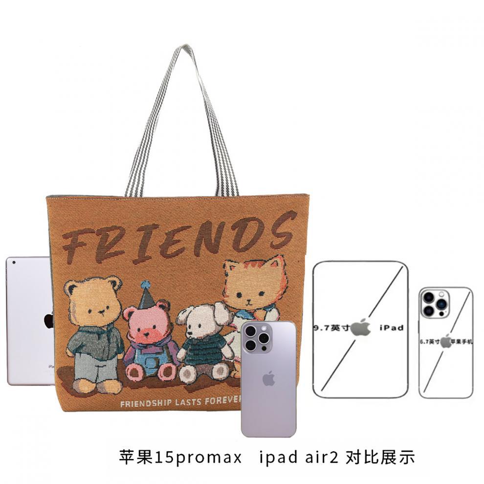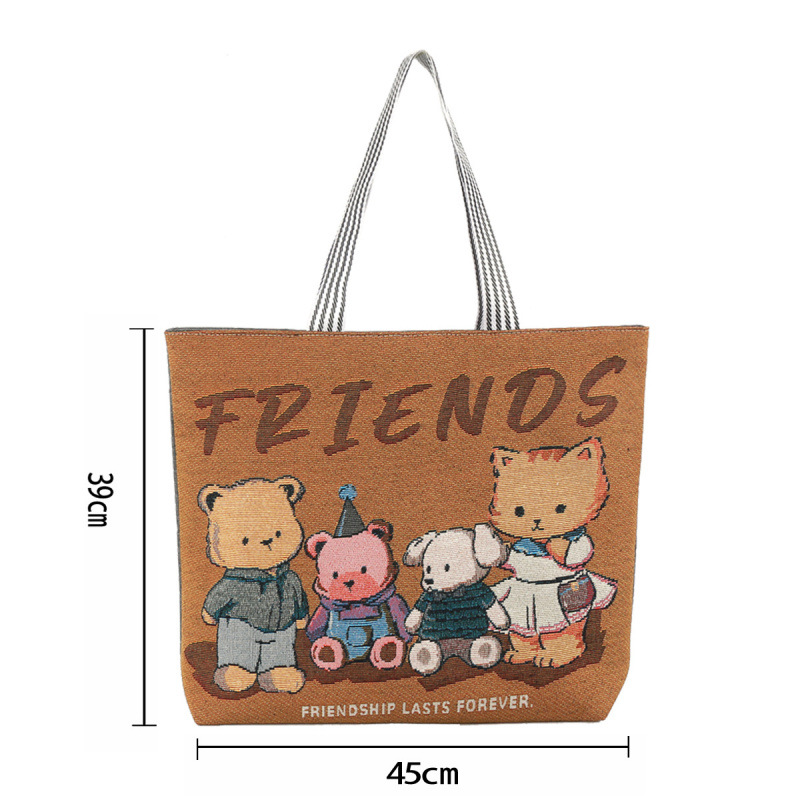 * 캔버스 가방 대용량 토트 캐주얼 귀여운 만화 핸드백 숄더백 자수 가방