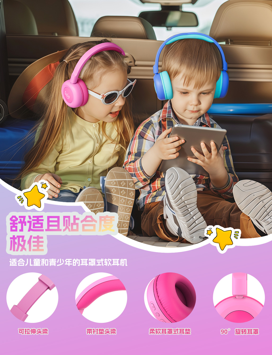 어린이 헤드셋 블루투스 헤드셋 마카롱 귀여운 2 차원 경량 및 내구성 온라인 레슨 학습 무선 헤드셋