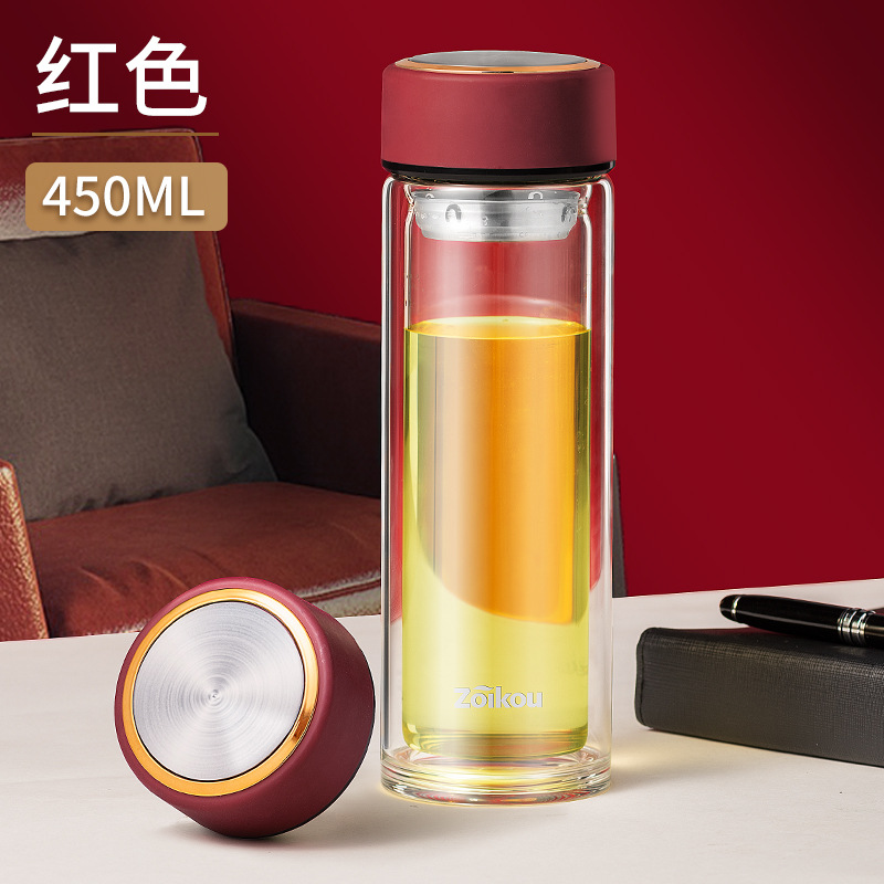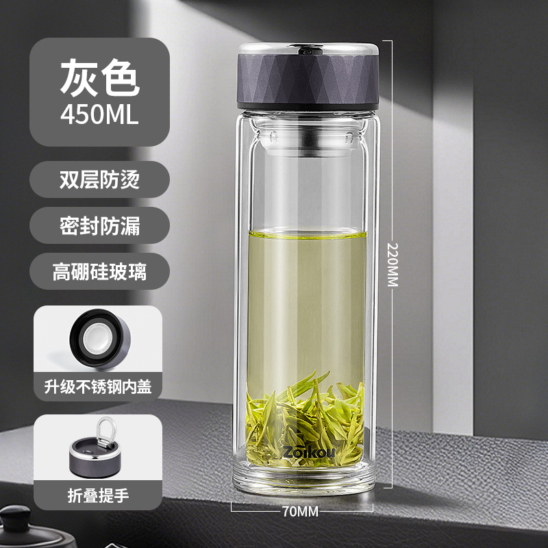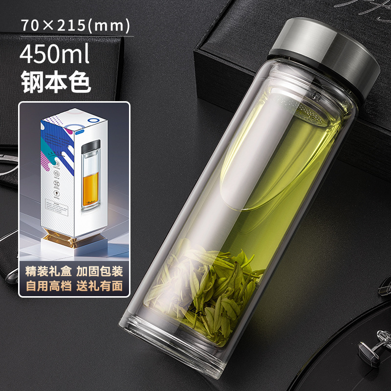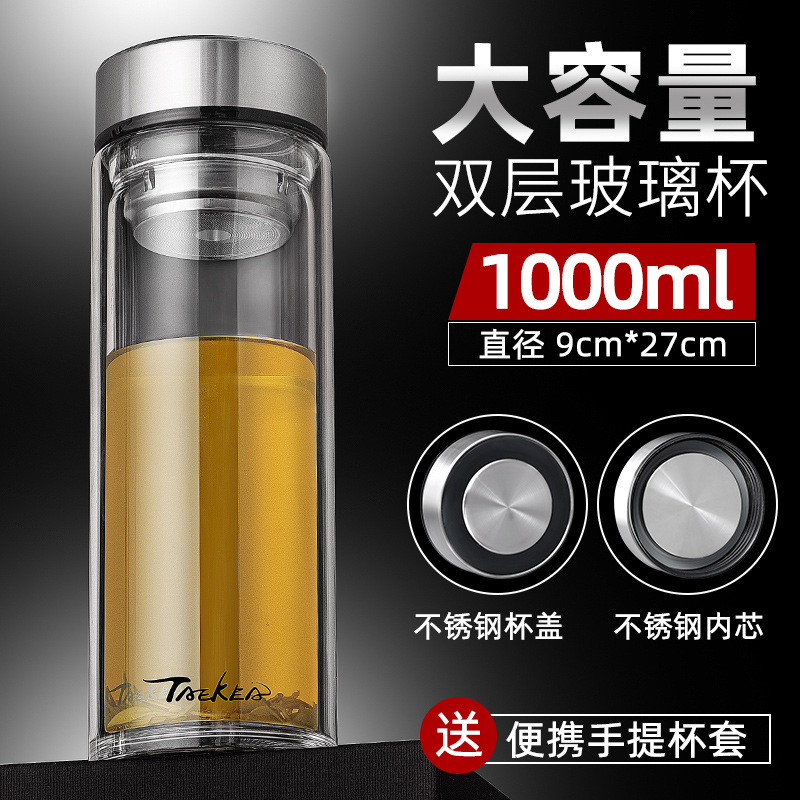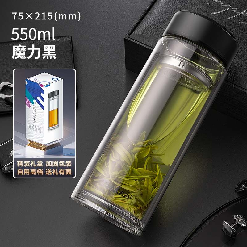 남성용 유리 이중층 물컵 2025 새로운 가정용 고온 방지 차 물 분리 컵 대용량 차 컵 없음