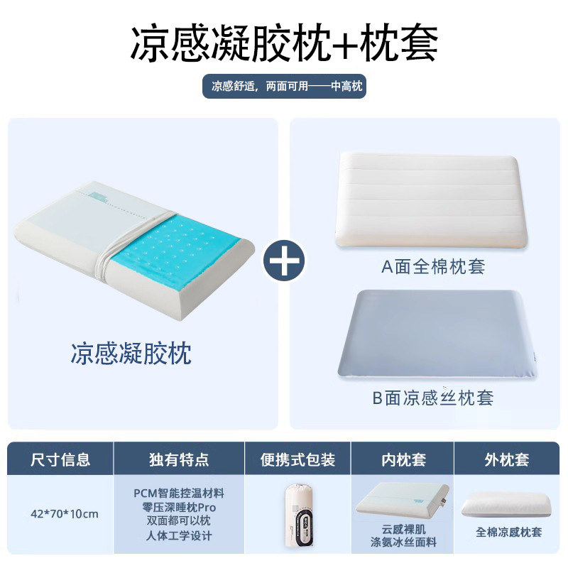 • 쿨링 젤 베개 70*42*8+조임끈 가방 포장+오리지널 외부 베개 커버