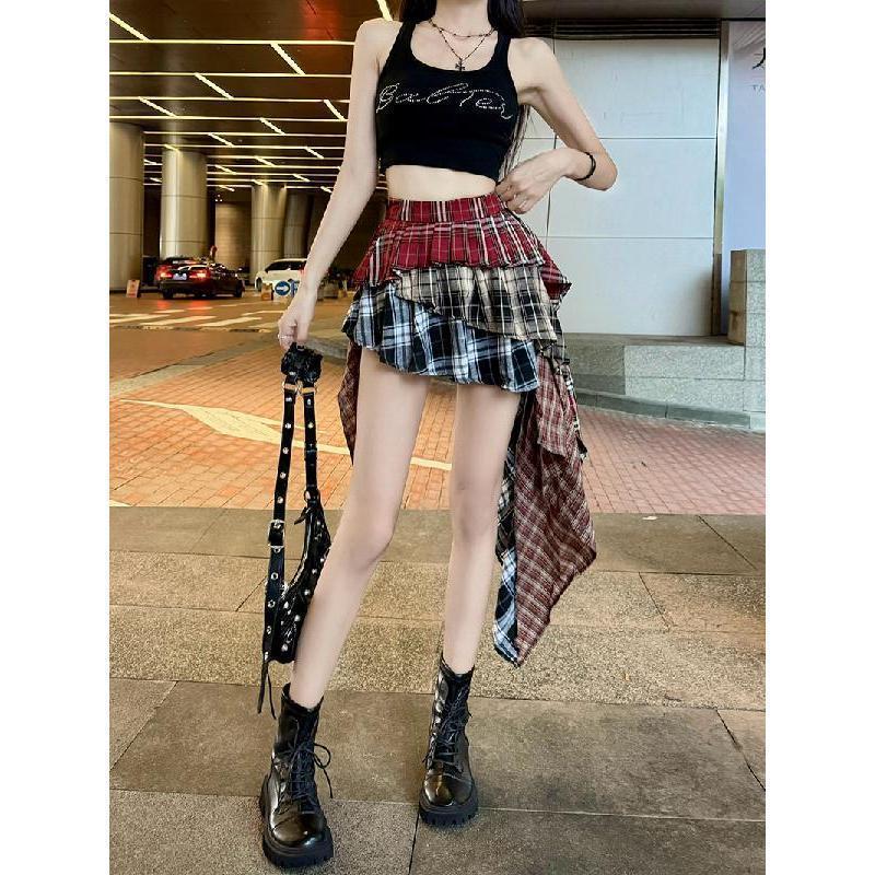 플러스 사이즈 통통녀 디자인 센스 틈새 레트로 격자 무늬 주름 치마 여름 슬리밍 불규칙한스토어 가기