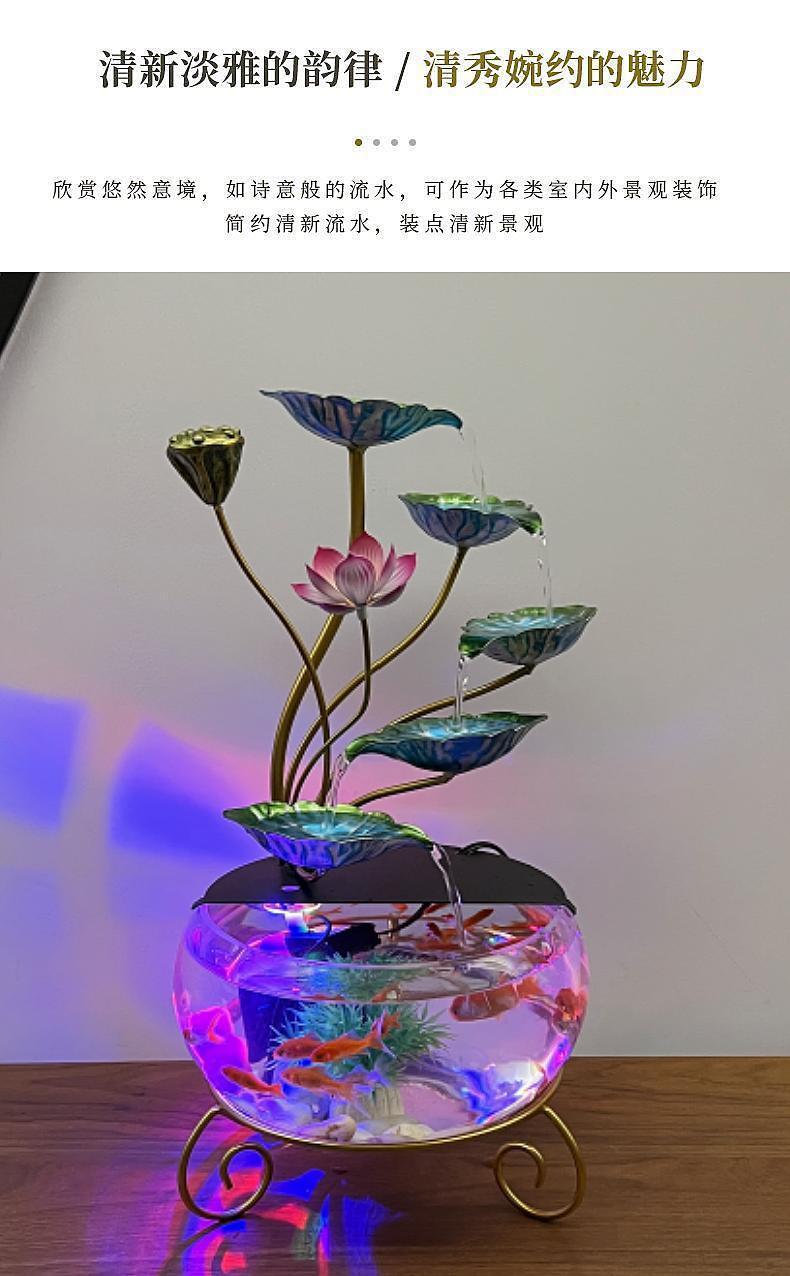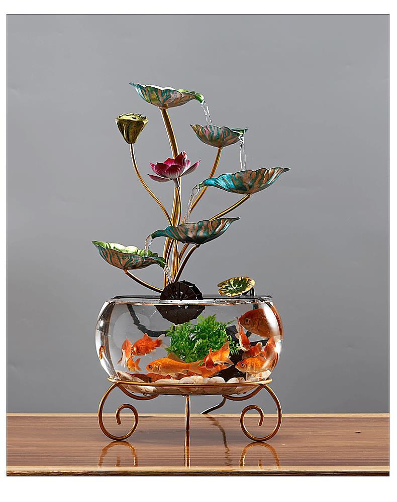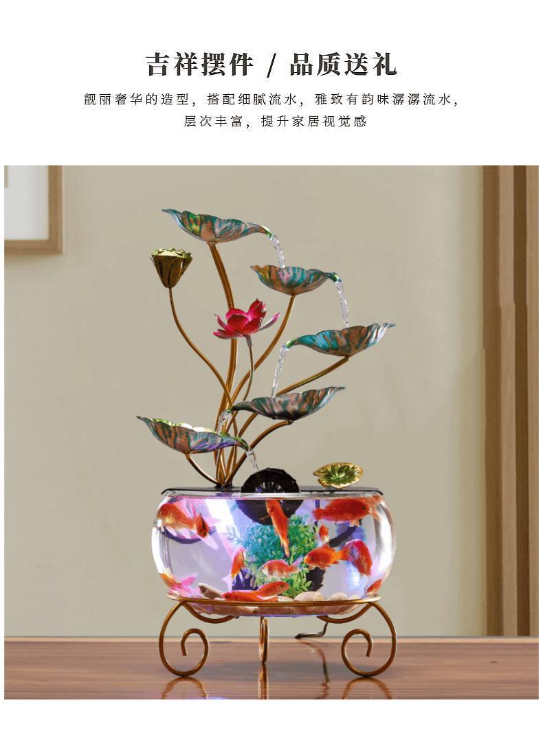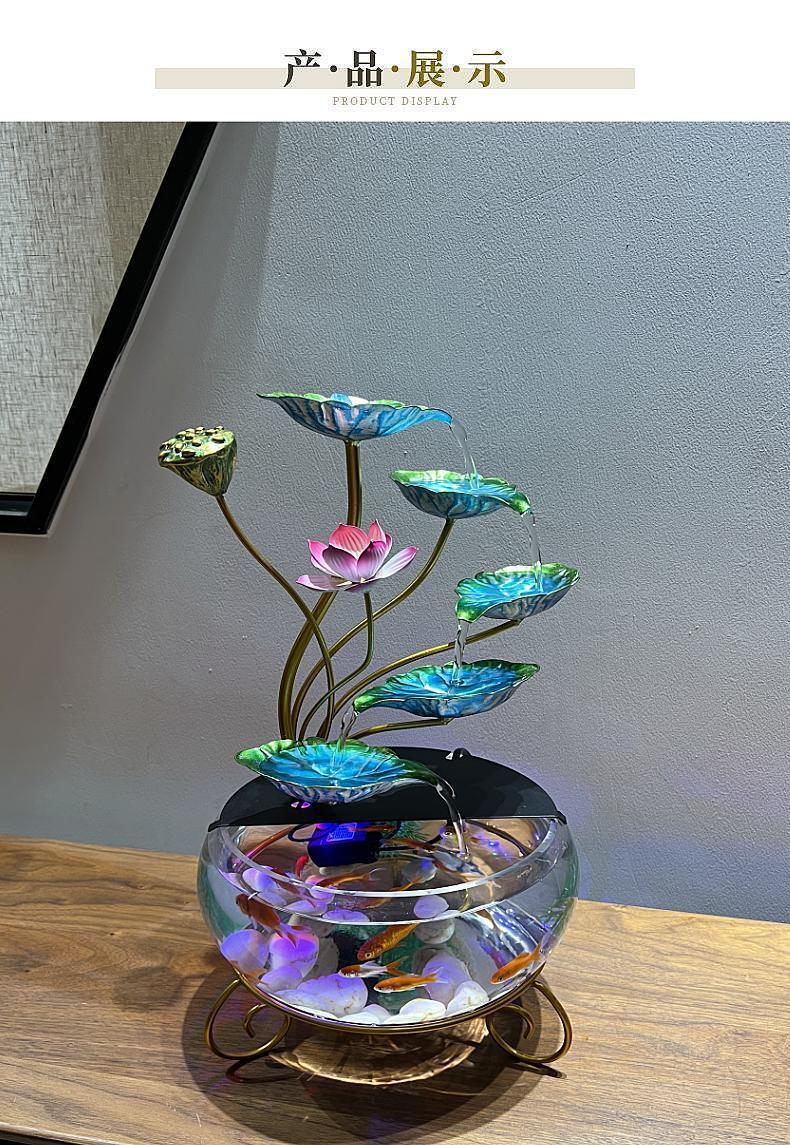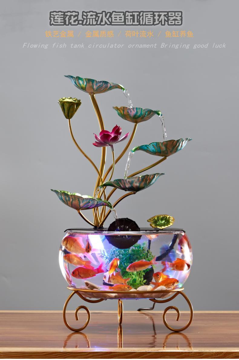 창의적인 연꽃 물줄기 장식품, 소형 가정용 거실 순환수 탁상 어항, 사무실 장식, 붕어스토어 가기