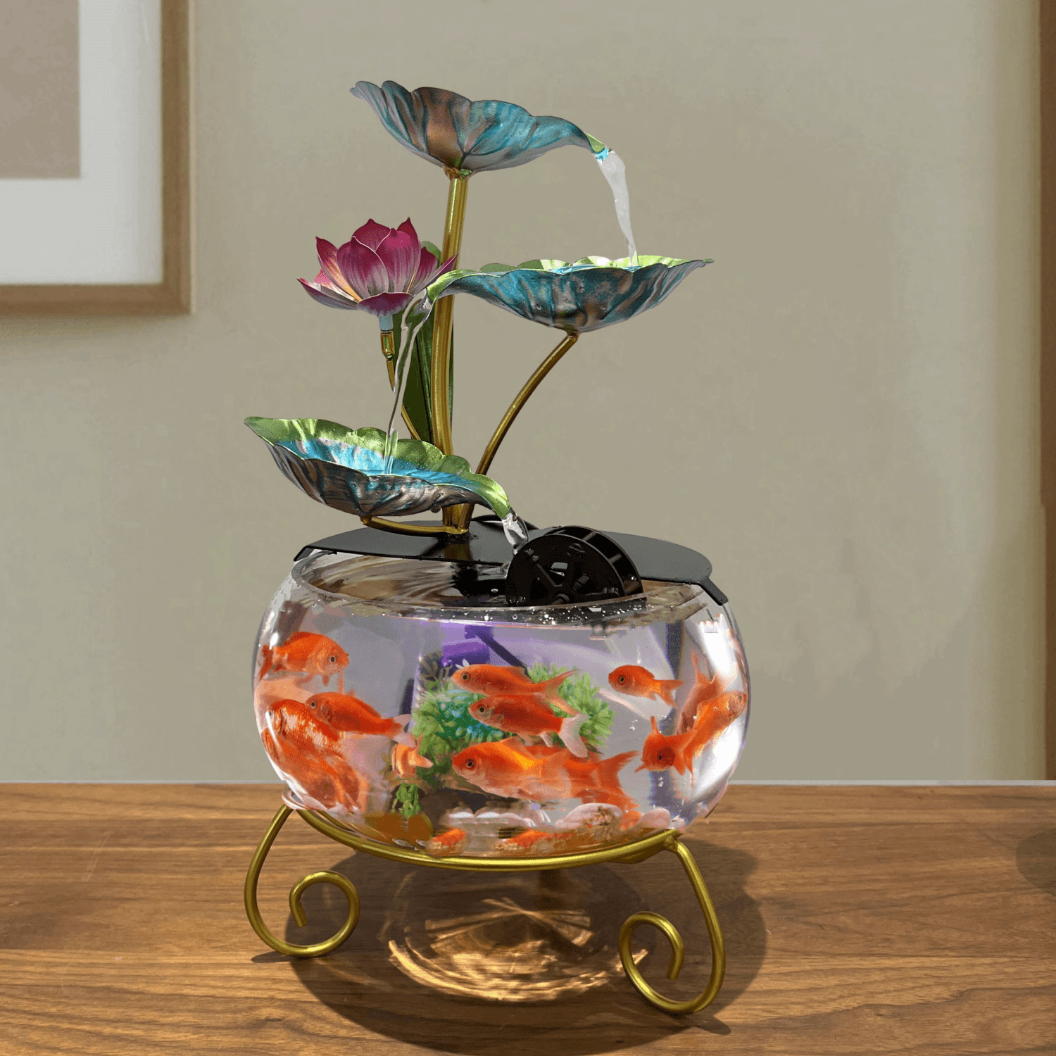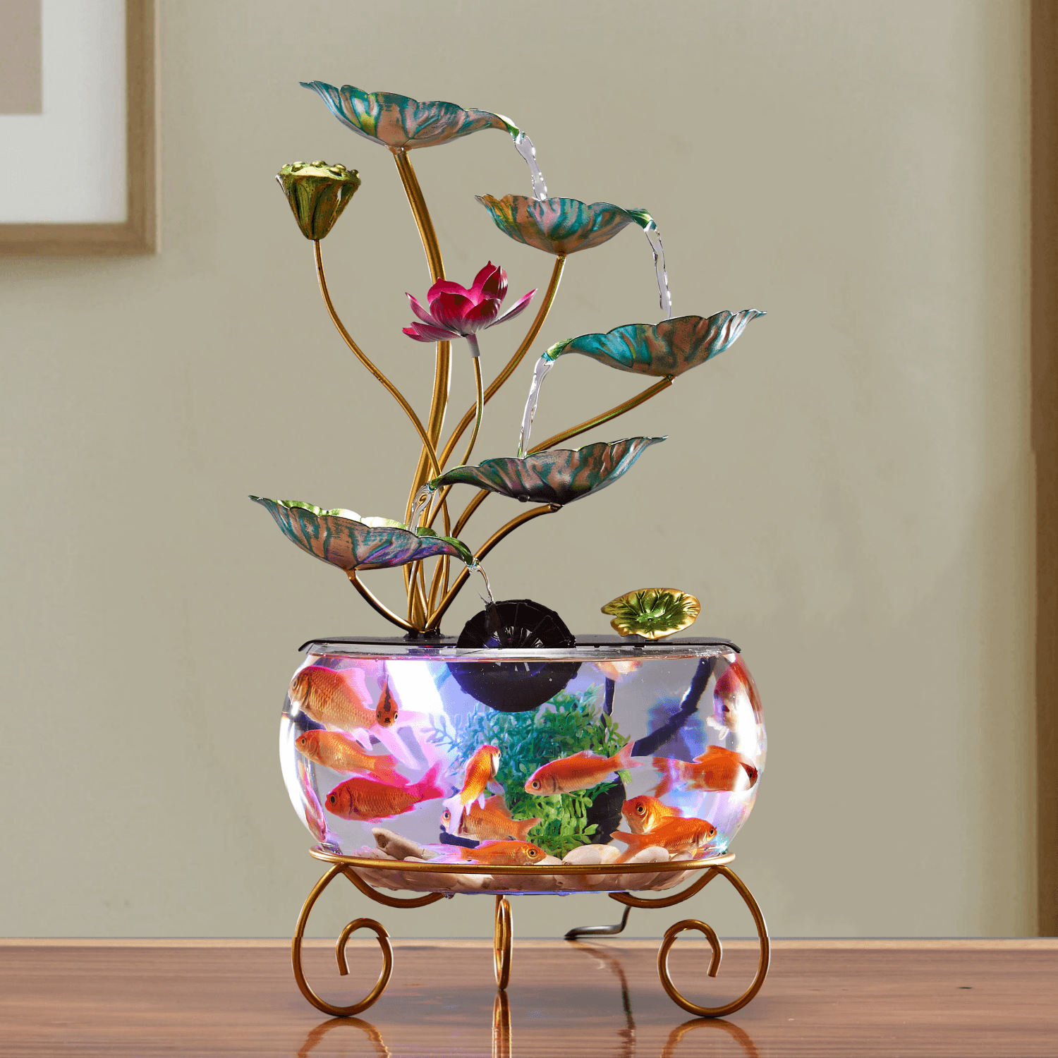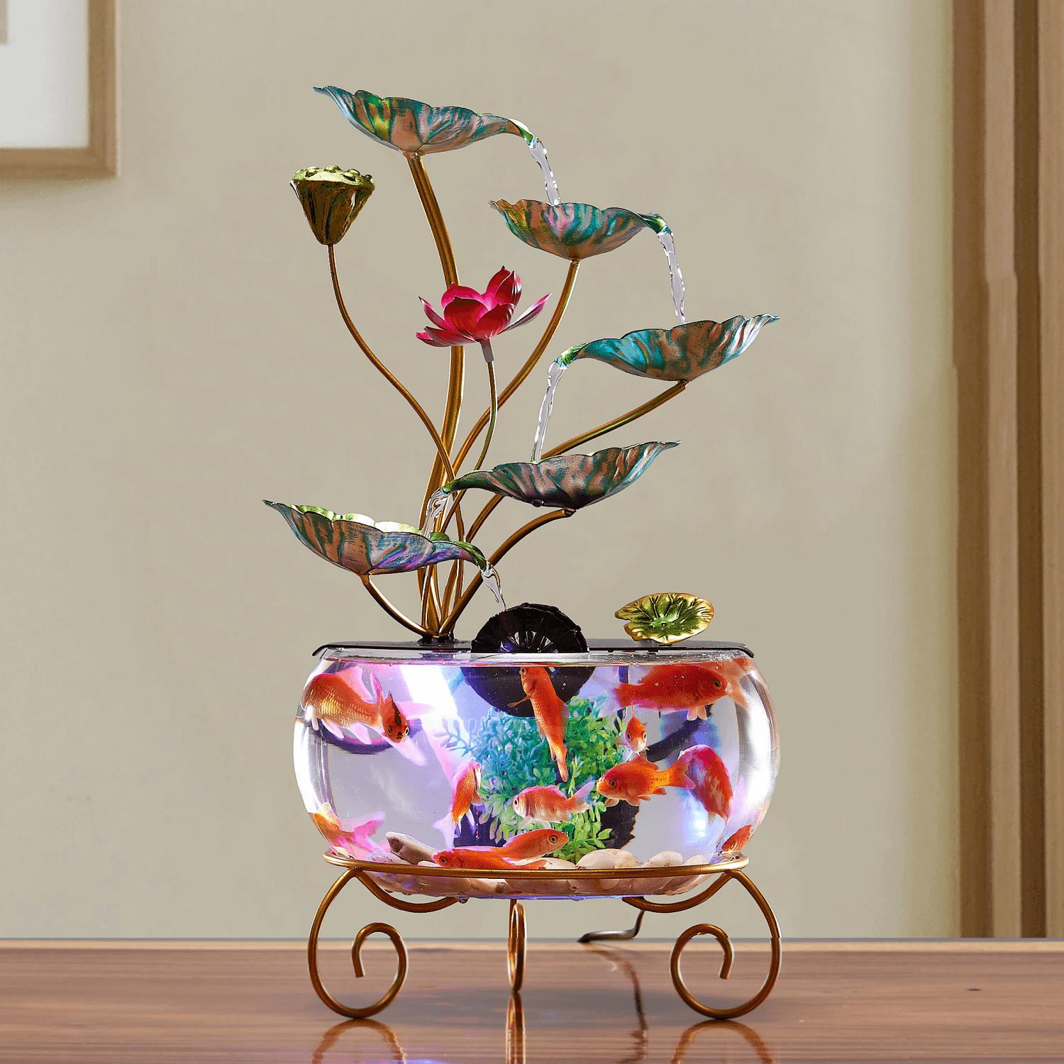 창의적인 연꽃 물줄기 장식품, 소형 가정용 거실 순환수 탁상 어항, 사무실 장식, 붕어