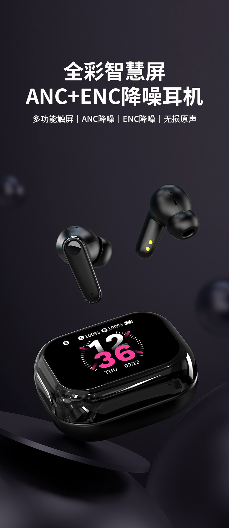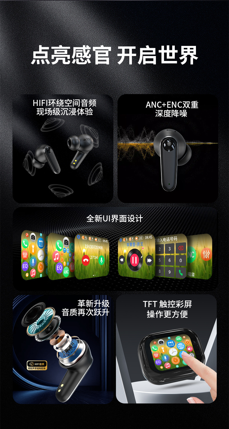 국경을 넘는 신제품 C11 스마트 컬러 스크린 블루투스 이어폰 ANC+ENC 이중 소음 감소 기능 탑재, 초장시간 배터리