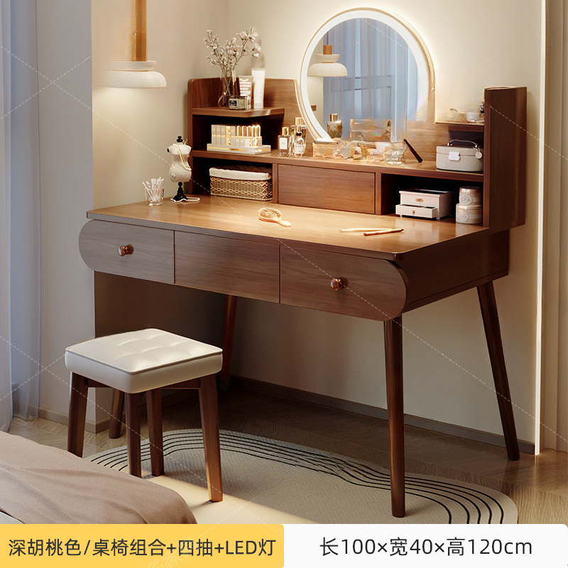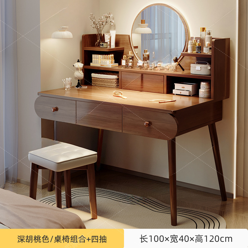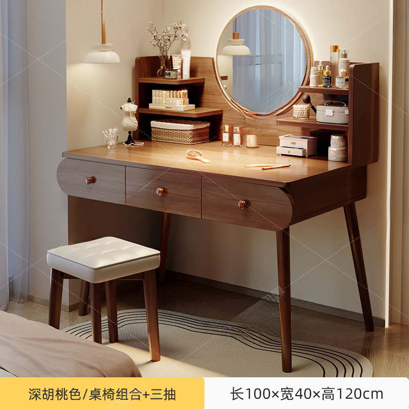 메이크업 테이블 드레싱 테이블 간단한 현대 2025 새로운 작은 솔리드 우드 컬러 침실 드레싱 테이블 작은 아파트 드레싱 테이블