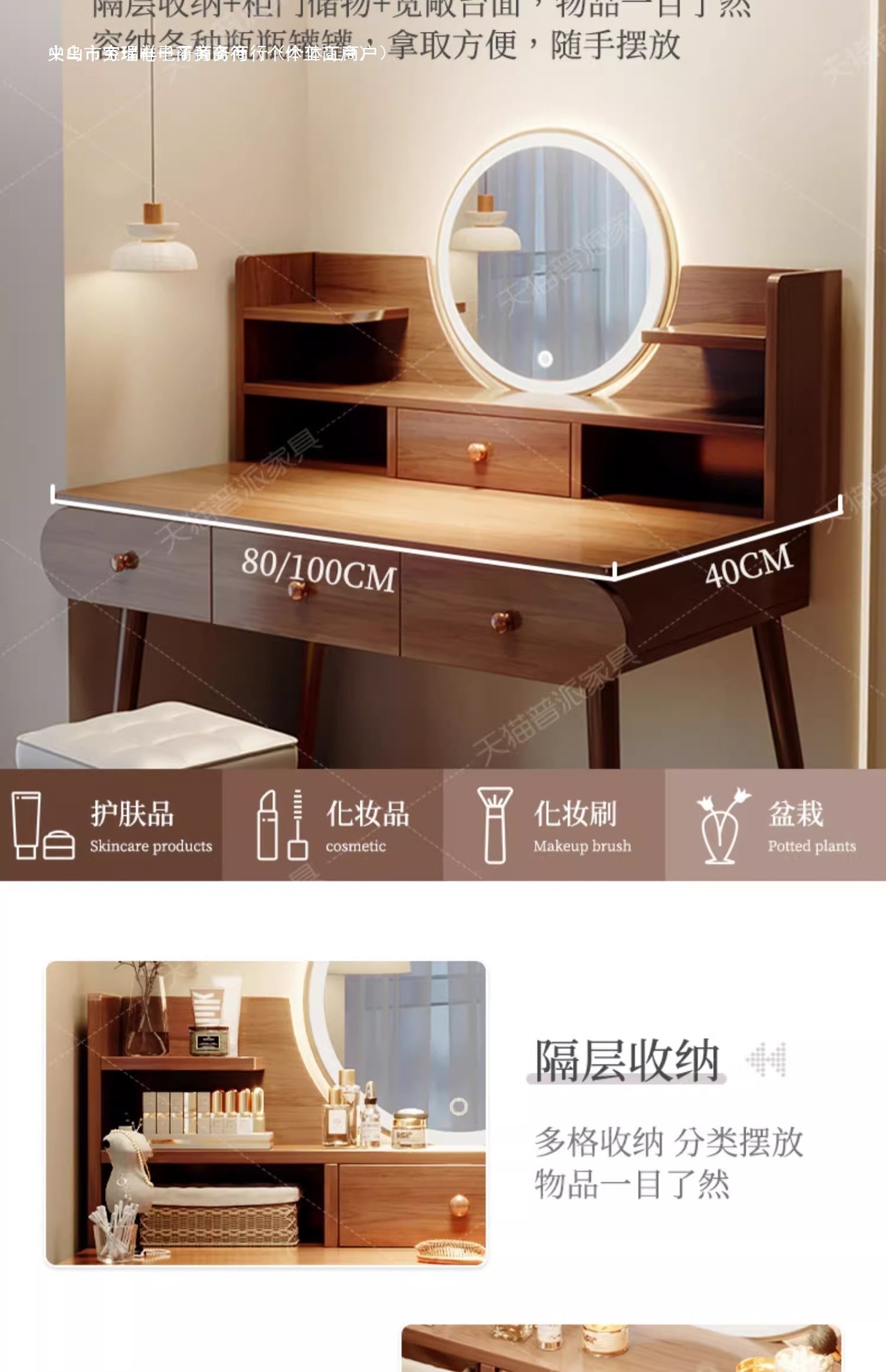 • [더블서랍+원목화장대+LED조명] 다크월넛 컬러 80CM