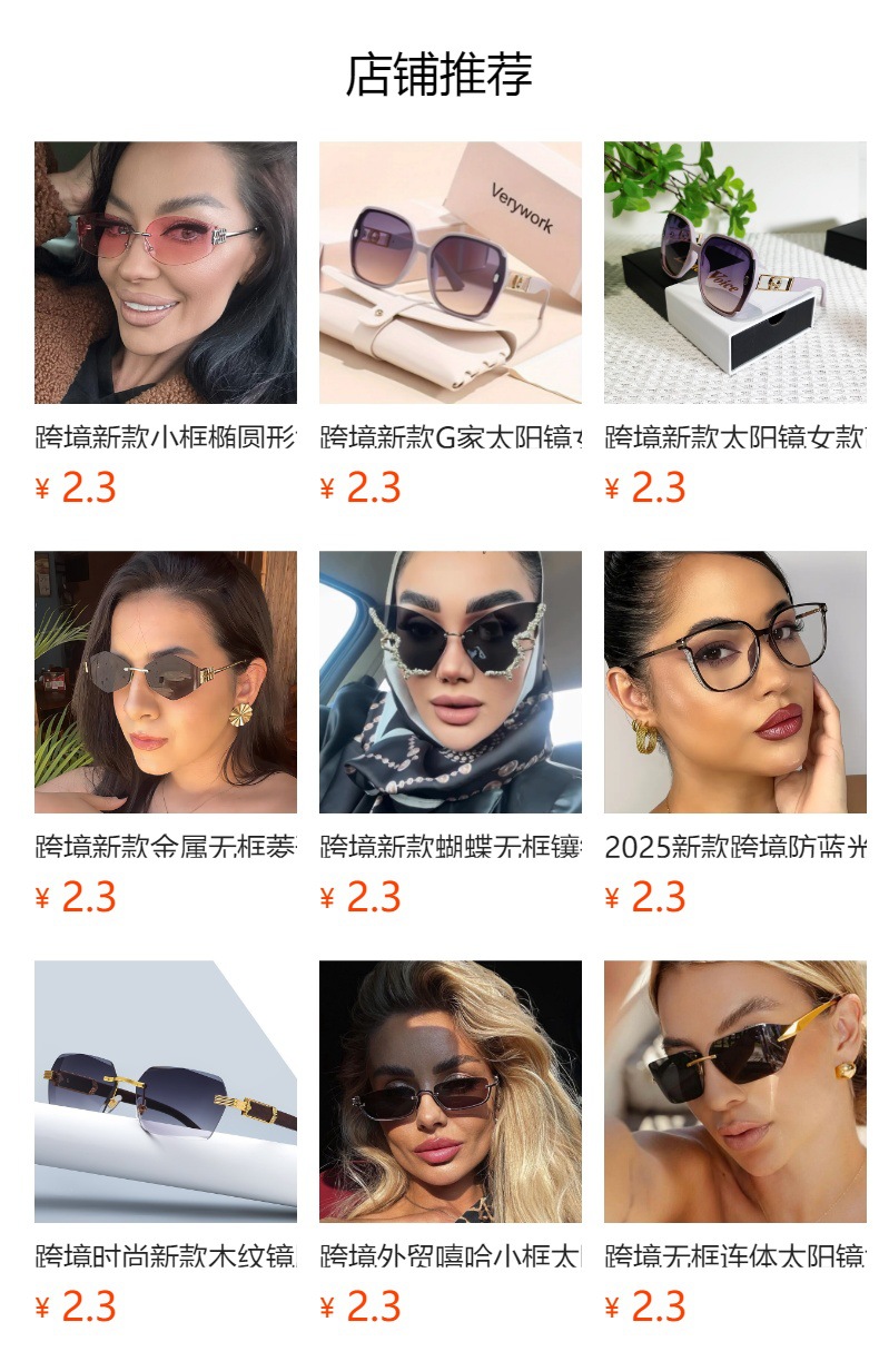 새로운 유럽과 미국의 트렌드 프레임리스 트리밍 타원형 선글라스 맞춤형 국경 독점 안경 힙합 안경 배치스토어 가기