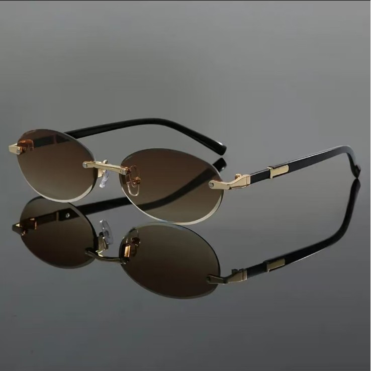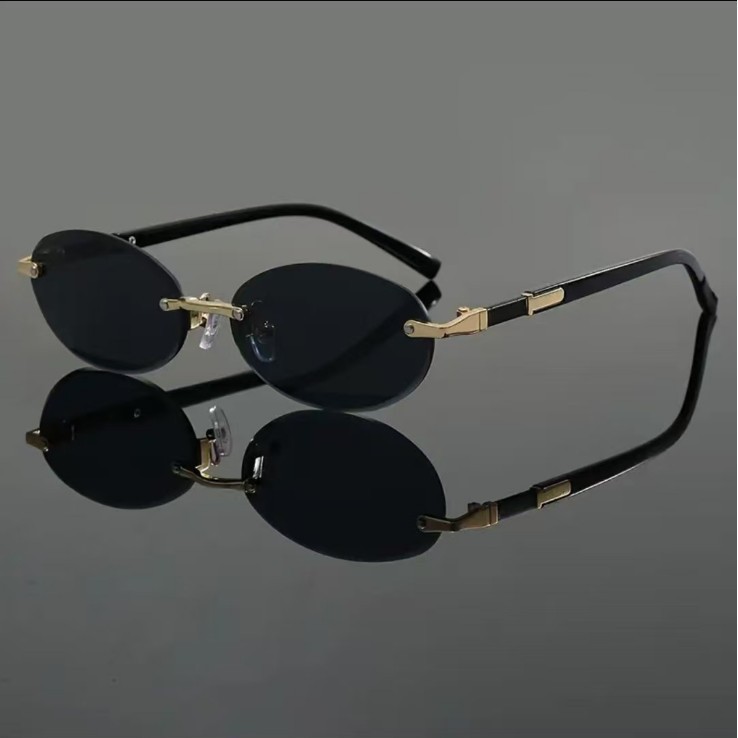 새로운 유럽과 미국의 트렌드 프레임리스 트리밍 타원형 선글라스 맞춤형 국경 독점 안경 힙합 안경 배치