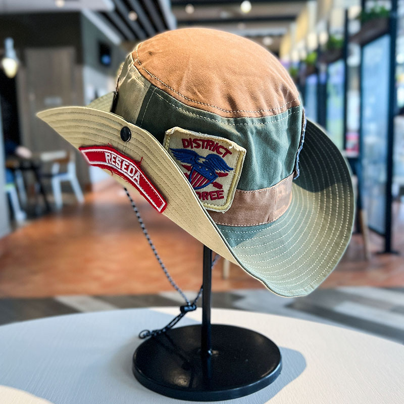 맞춤형 레트로 패치 패치 패치 어부의 모자 남녀 야외 여행 캠핑 하이킹 모자 웨스턴 카우보이 모자스토어 가기