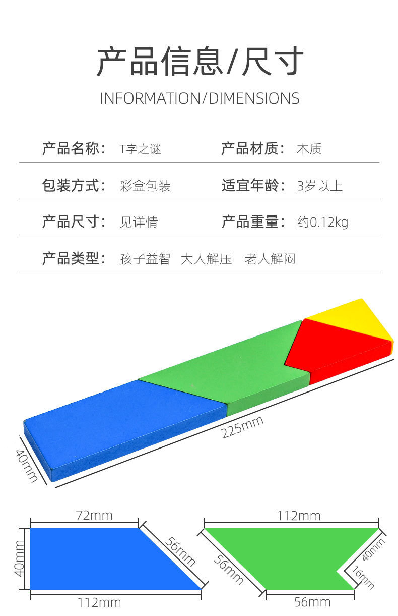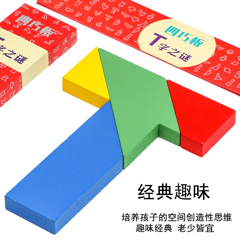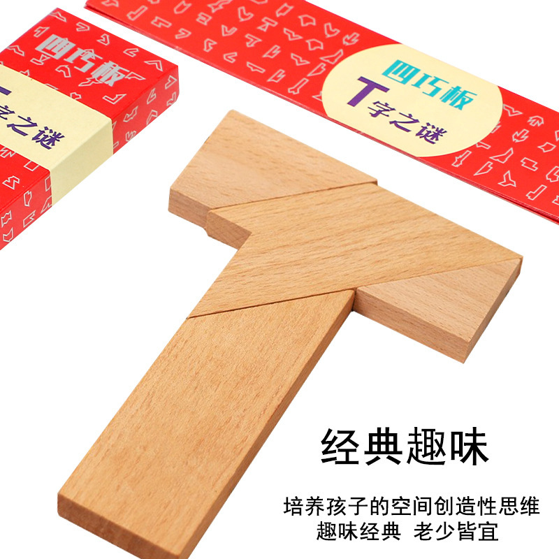 너도밤나무 긴 T자형 퍼즐 메모리 조기 교육 클래식 장난감 초등학생 교구 나무 Tangram