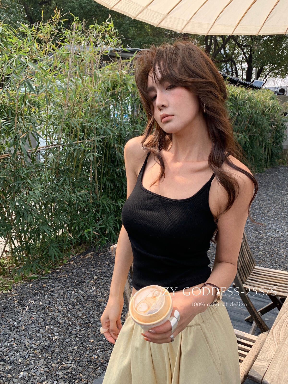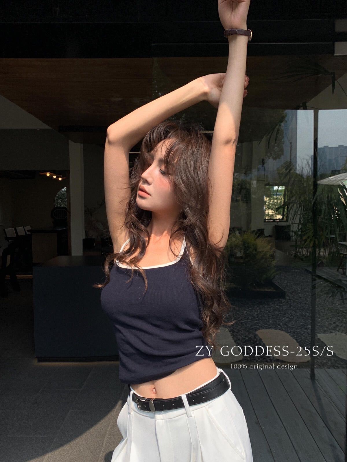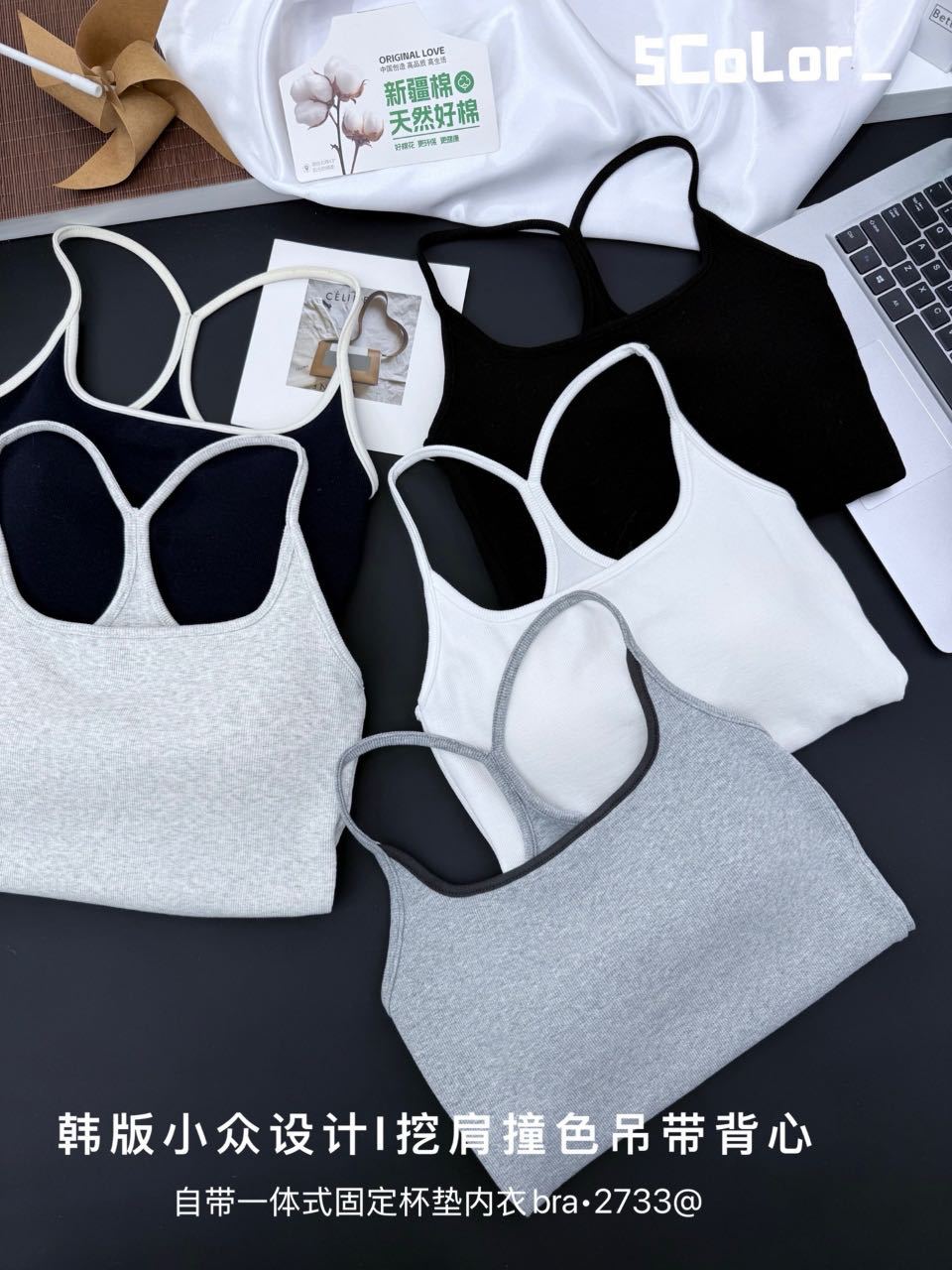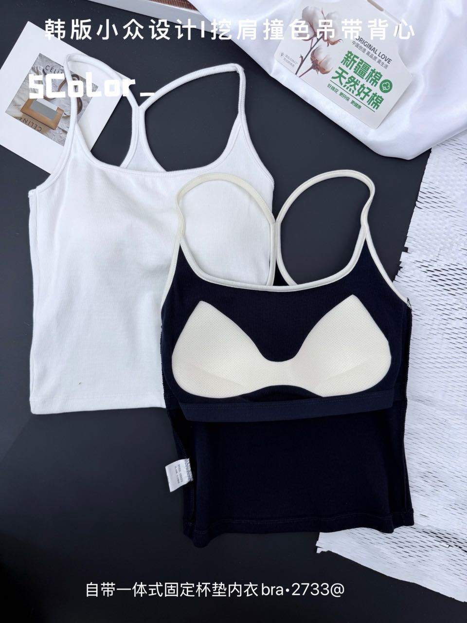 2733 퓨어 러스트 화이트 홀터넥 서스펜더 하이엔드 패딩 조끼 달콤하고 매콤한 대비 색상 섹시한 아름다운 등 스포츠 스타일 탑