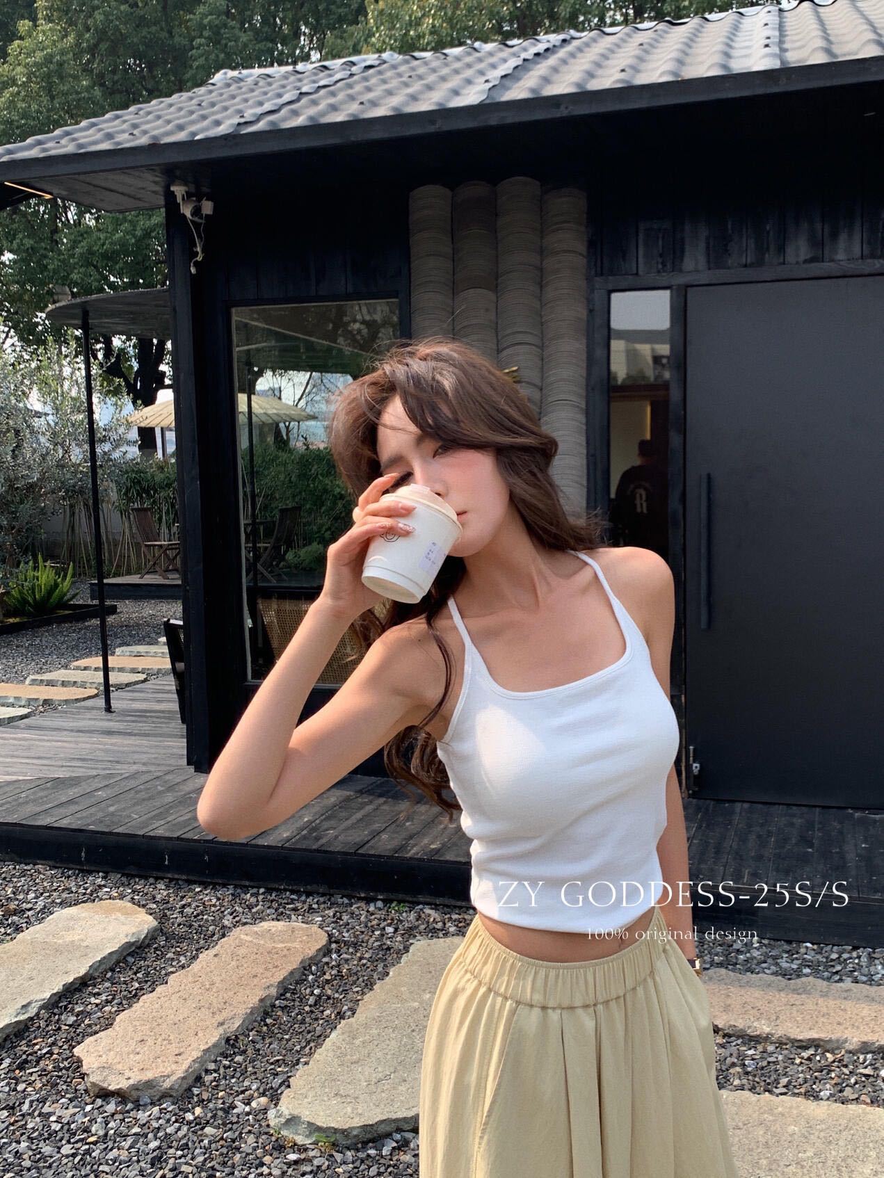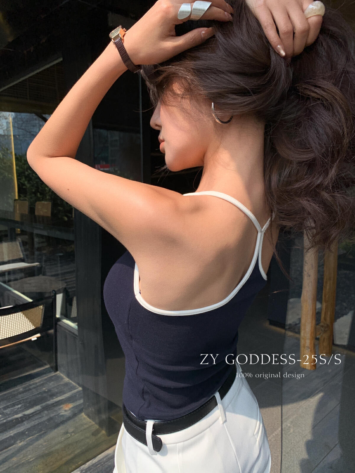 2733 퓨어 러스트 화이트 홀터넥 서스펜더 하이엔드 패딩 조끼 달콤하고 매콤한 대비 색상 섹시한 아름다운 등 스포츠 스타일 탑스토어 가기