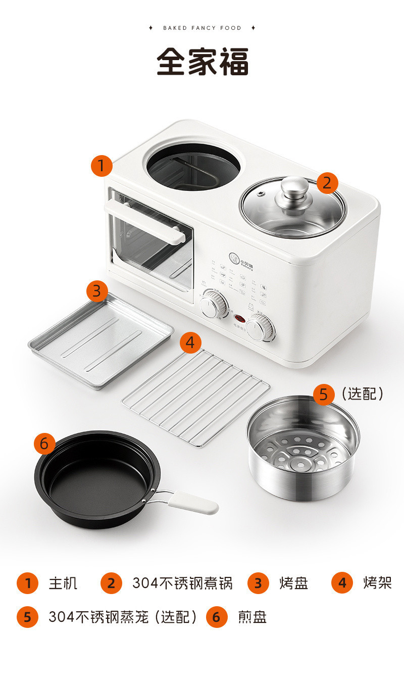 • (조합 2) 논스틱 내솥 + 4인1 아침식사 기계 [찜기 없음]