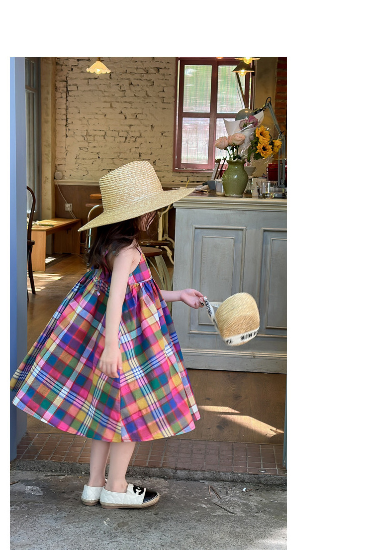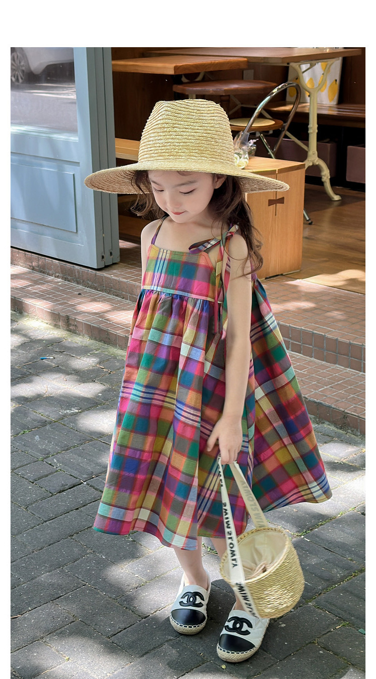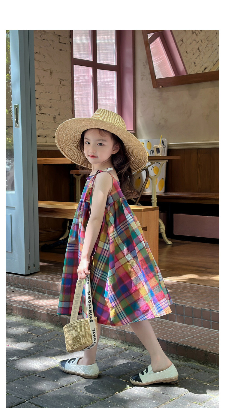 소녀 원피스 여름 새로운 한국 스타일 다채로운 멜빵 체크 무늬 공주 스커트 어린이 머리카락스토어 가기