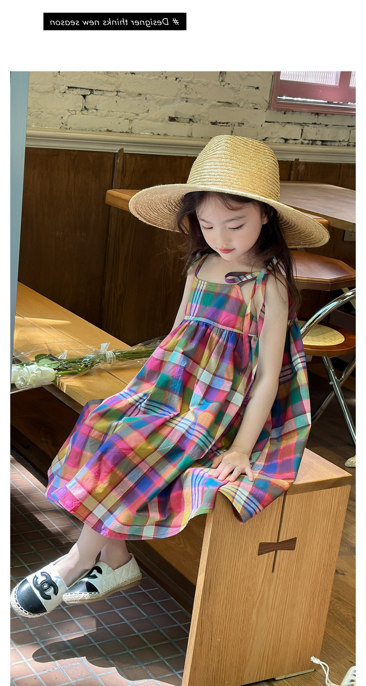 소녀 원피스 여름 새로운 한국 스타일 다채로운 멜빵 체크 무늬 공주 스커트 어린이 머리카락
