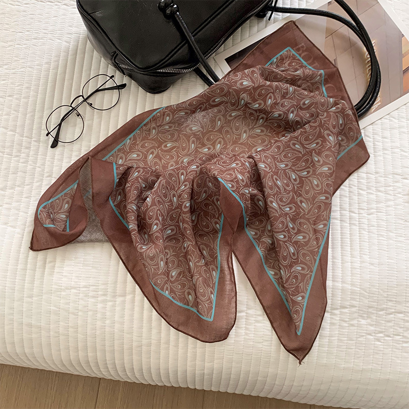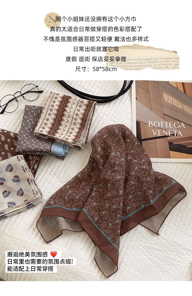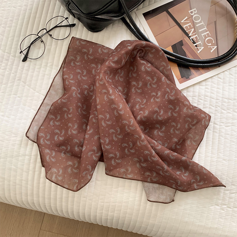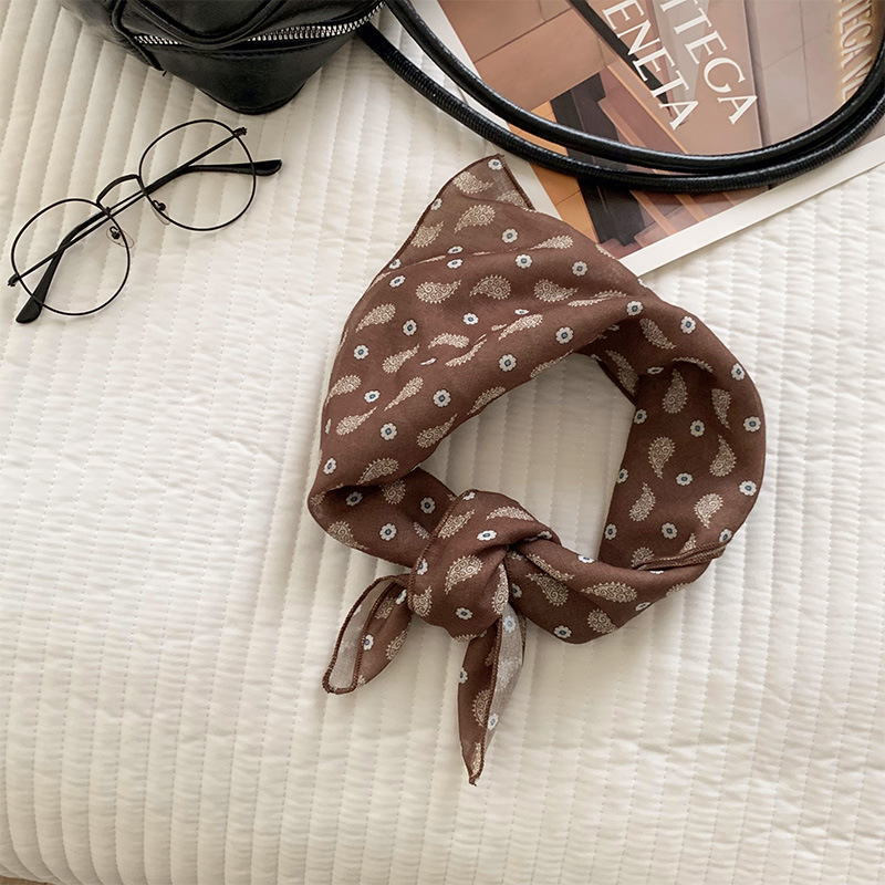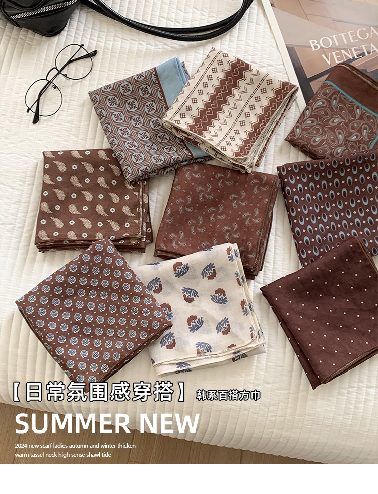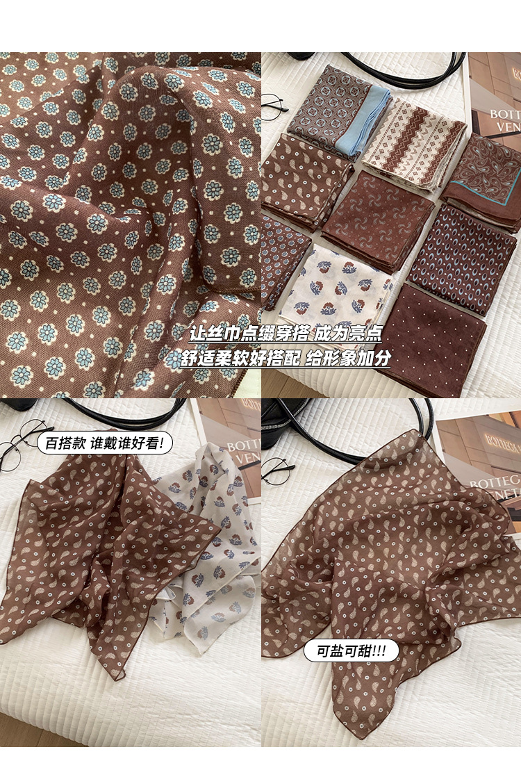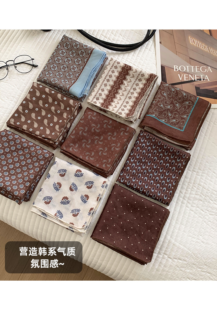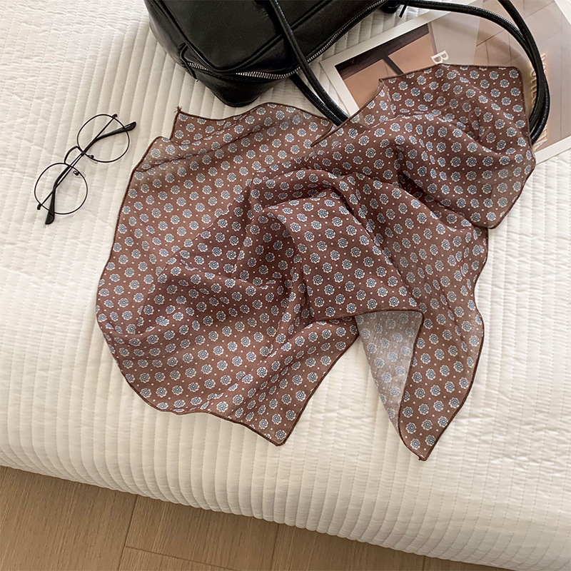 여성을위한 한국 갈색 폴카 도트 스퀘어 스카프 2025 새로운 고급 실크 스카프 넥 스카프 헤어 밴드 장식 스카프 스카프스토어 가기