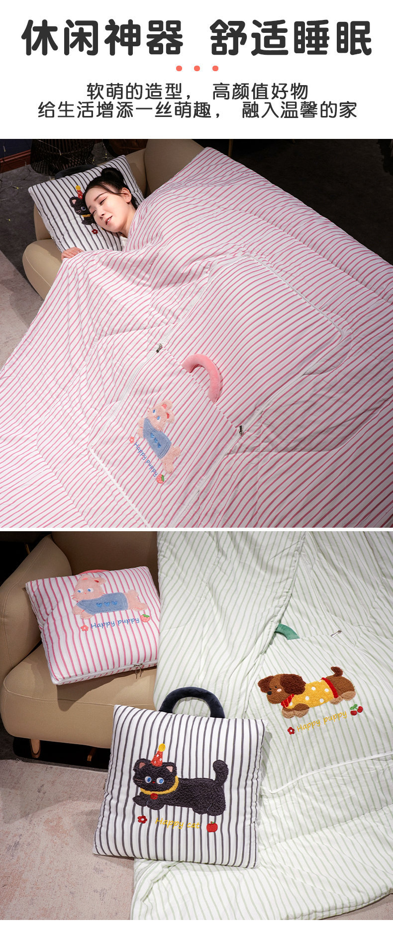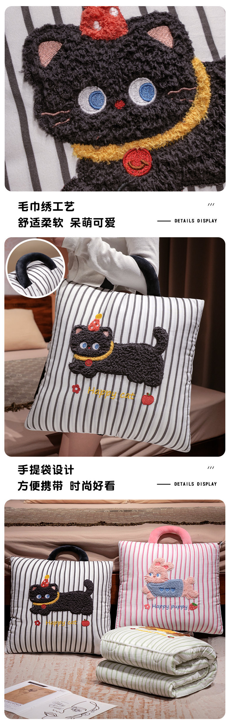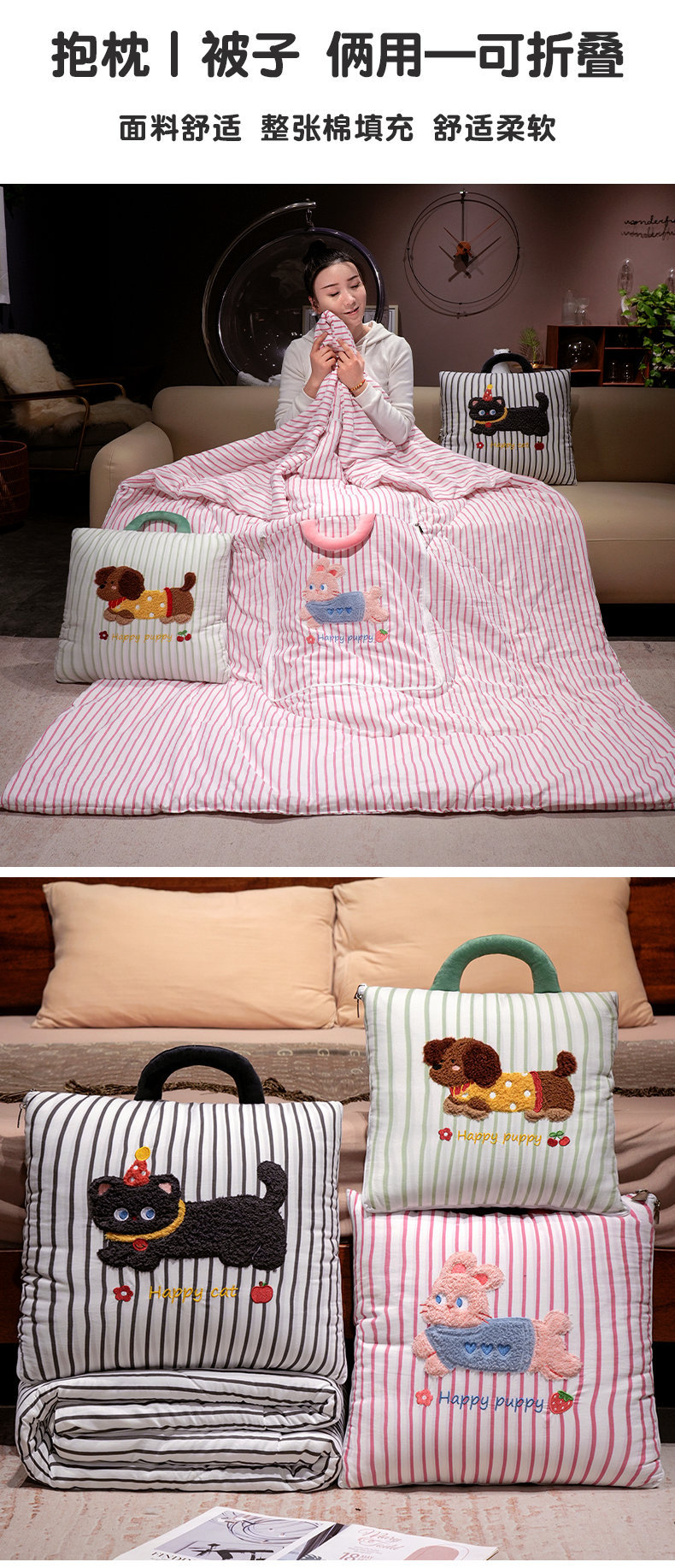 만화 토끼 개 베개 이불 두꺼운 사무실 쿠션 이불 베개 소파 커버 담요 자동차 에어컨 이불