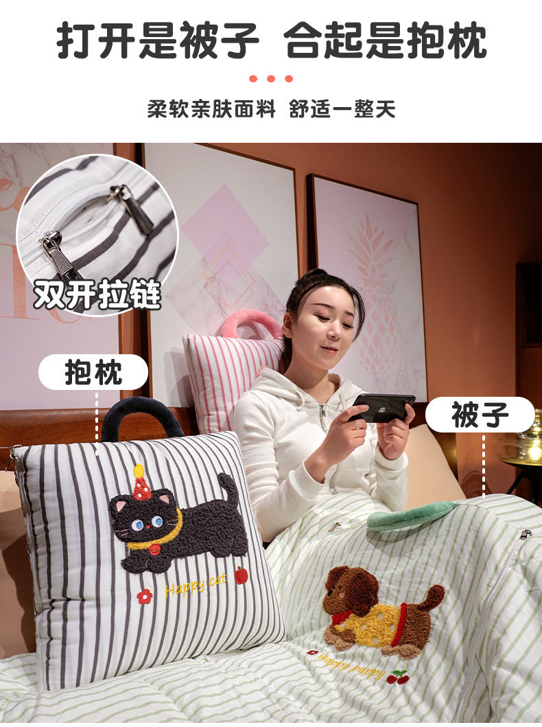 만화 토끼 개 베개 이불 두꺼운 사무실 쿠션 이불 베개 소파 커버 담요 자동차 에어컨 이불스토어 가기