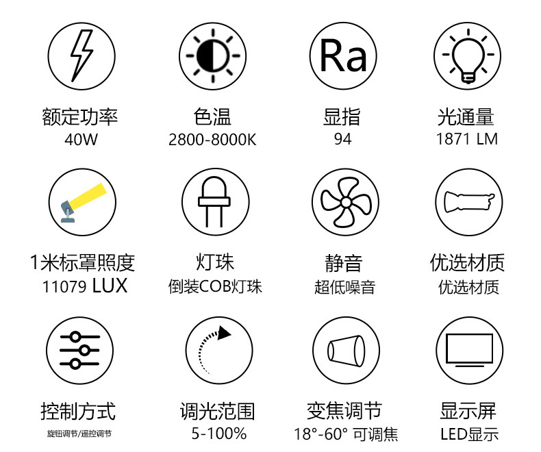 라이브 방송실 헤어 라이트 40w 3색 스포트라이트 필 라이트 사진 라이브 방송 셀카 조정 가능한 초점 스포트라이트 헤어 라이트스토어 가기
