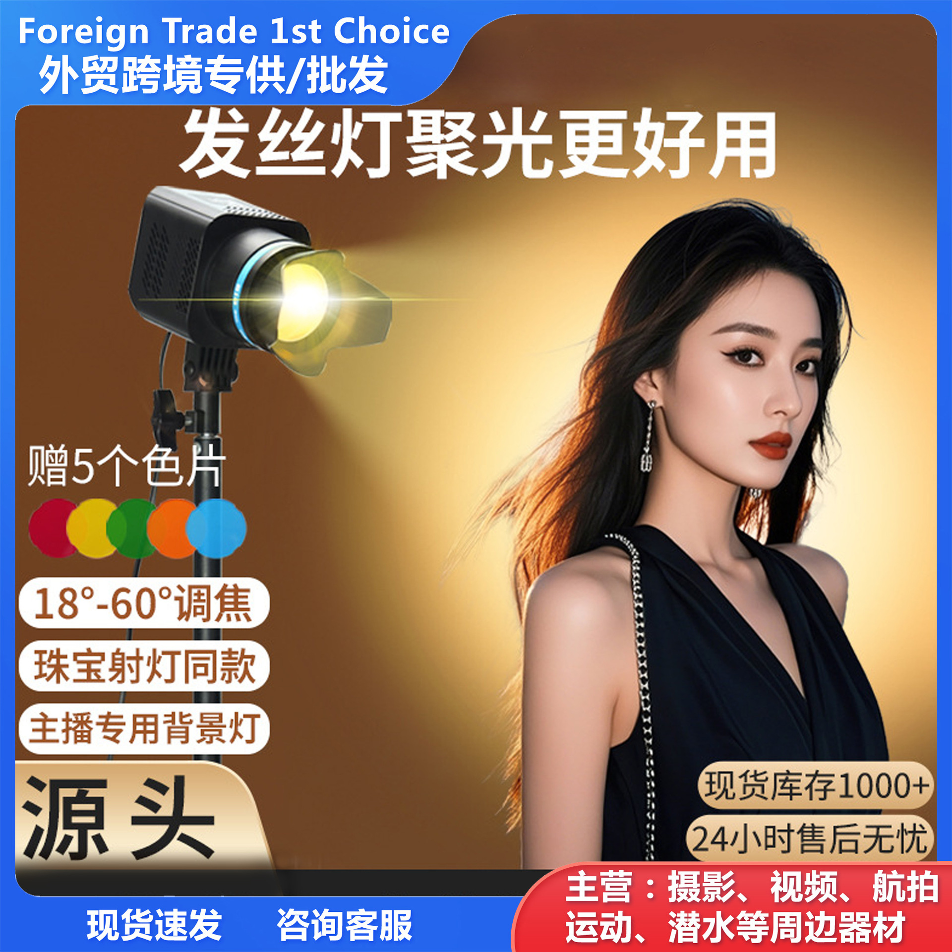 • [40W 헤어라이트] 3색 조절 가능 초점 + 2.1m 라이트 스탠드 (5가지 컬러칩 포함)