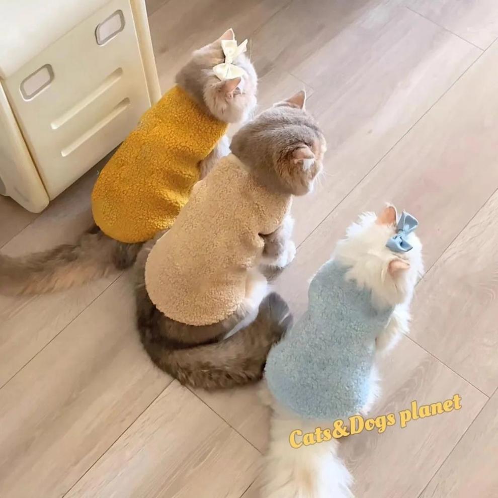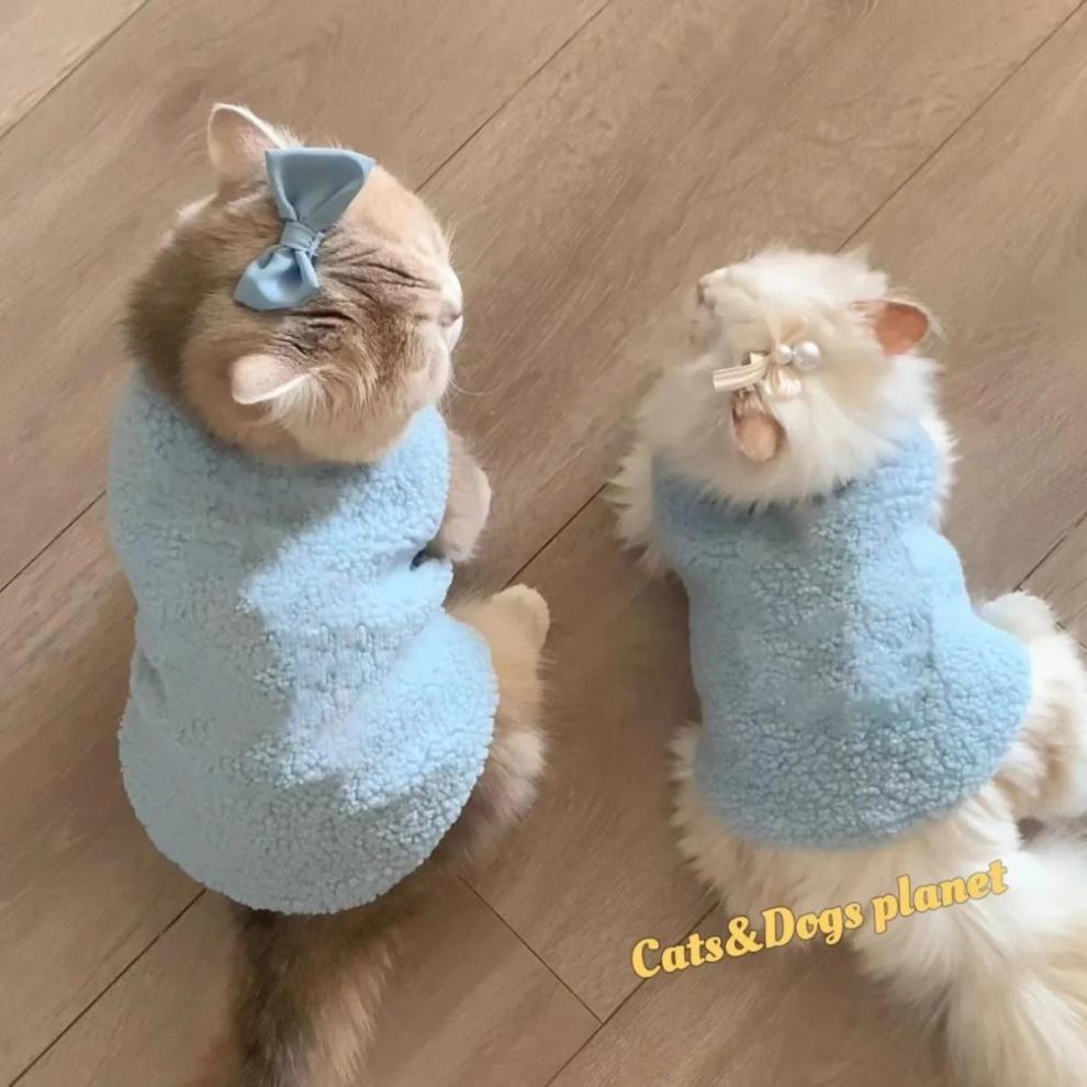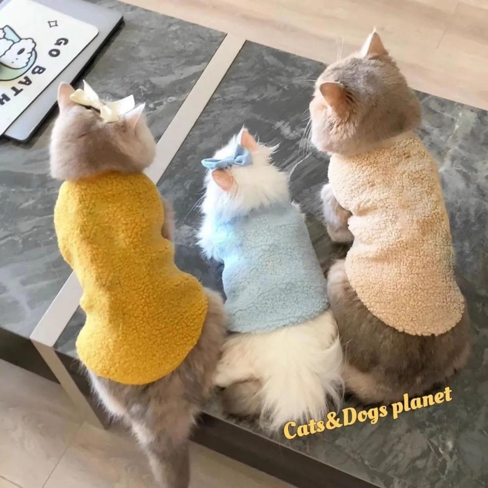 고양이 가을과 겨울 옷 양고기 양털 조끼 안티-모피 새끼 고양이 우유 고양이 애완 동물 따뜻한 두꺼운 피부 친화적인베이스 셔츠스토어 가기