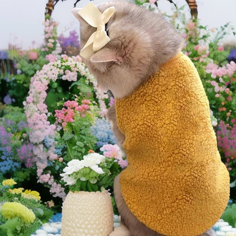 고양이 가을과 겨울 옷 양고기 양털 조끼 안티-모피 새끼 고양이 우유 고양이 애완 동물 따뜻한 두꺼운 피부 친화적인베이스 셔츠