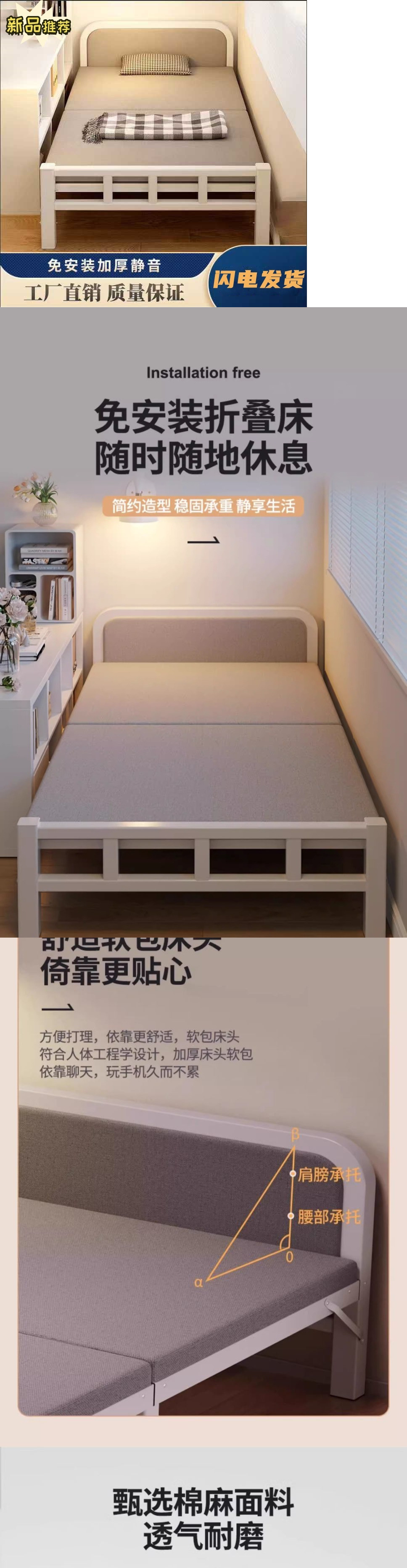 철제 침대 가정용 싱글 침대 접이식 침대 성인 사무실 간이 침대 단단한 침대 성인 기숙사 점심 시간 작은 침대스토어 가기