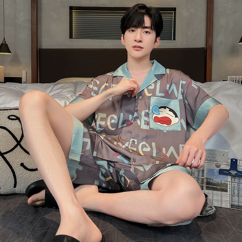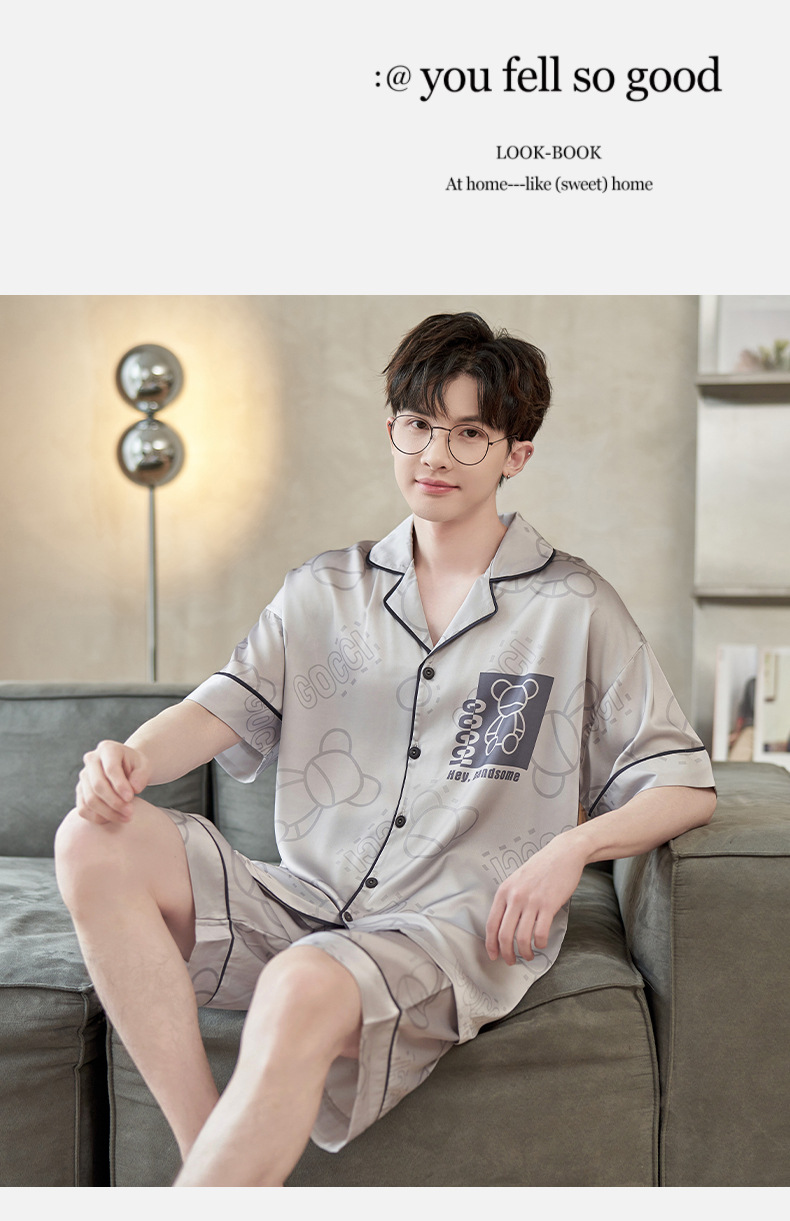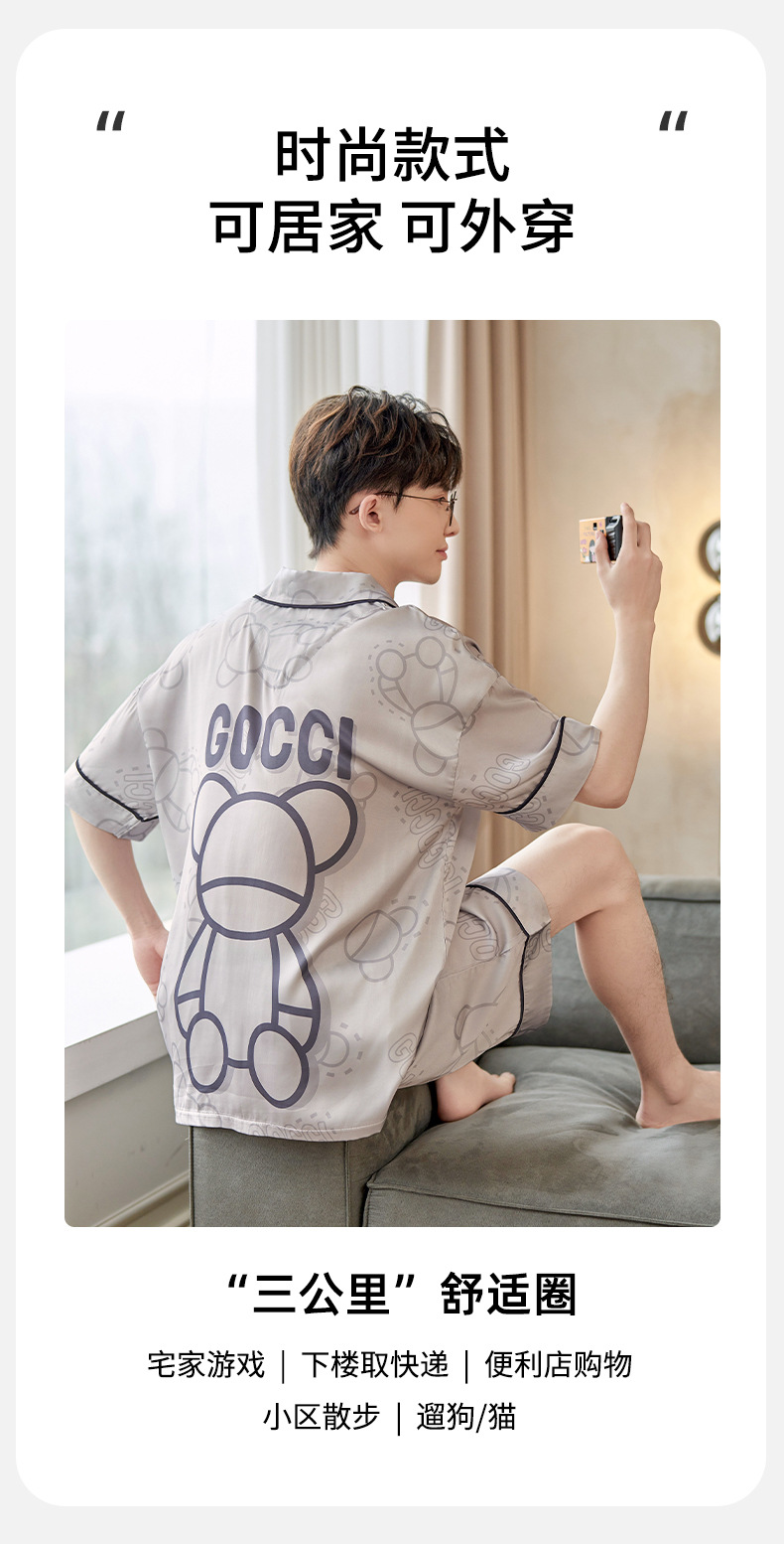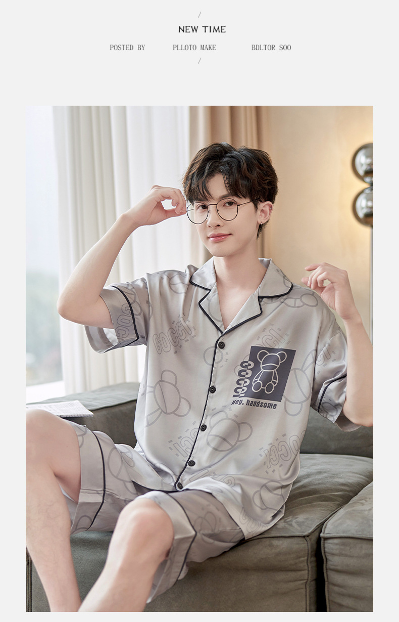 남성용 잠옷 여름 얼음 실크 반팔 얇은 고급 실크 여름 스타일 남성용 청소년 학생 및 어린이 정장