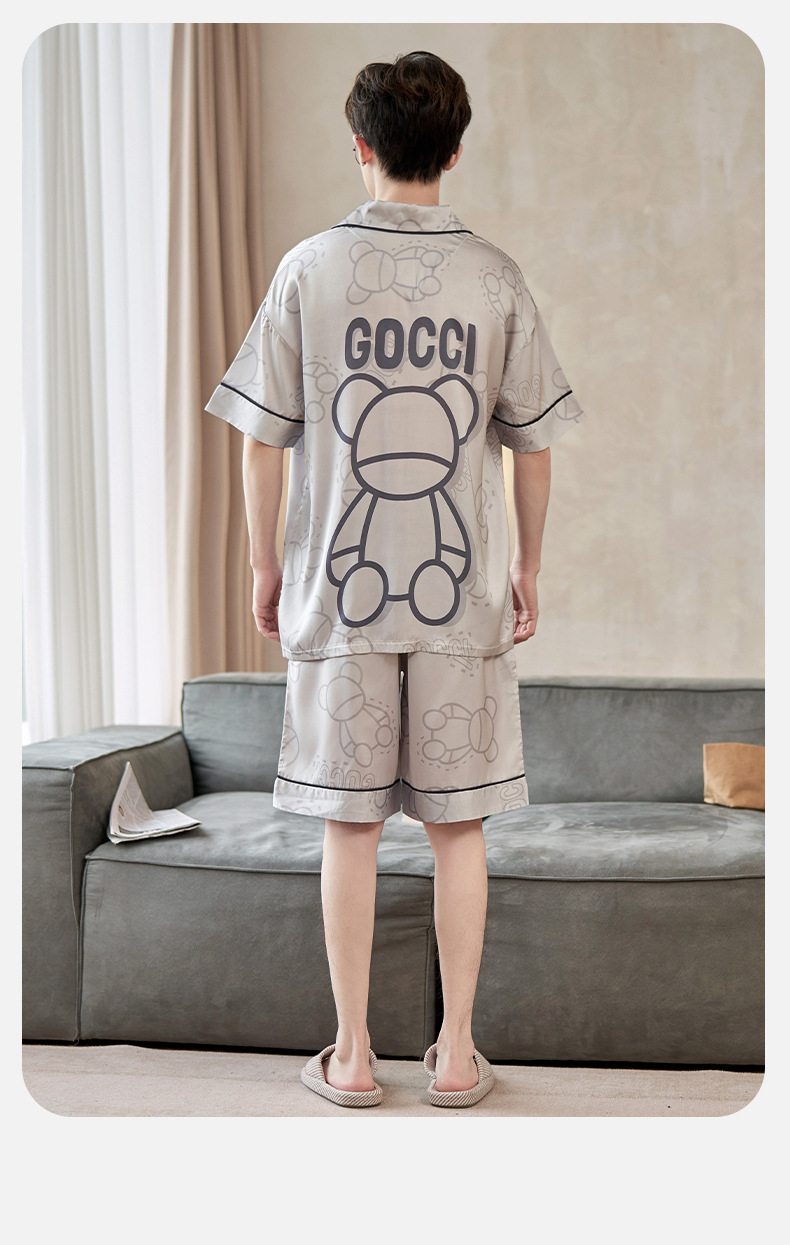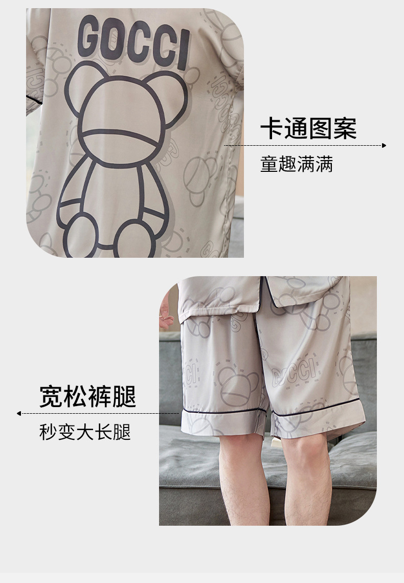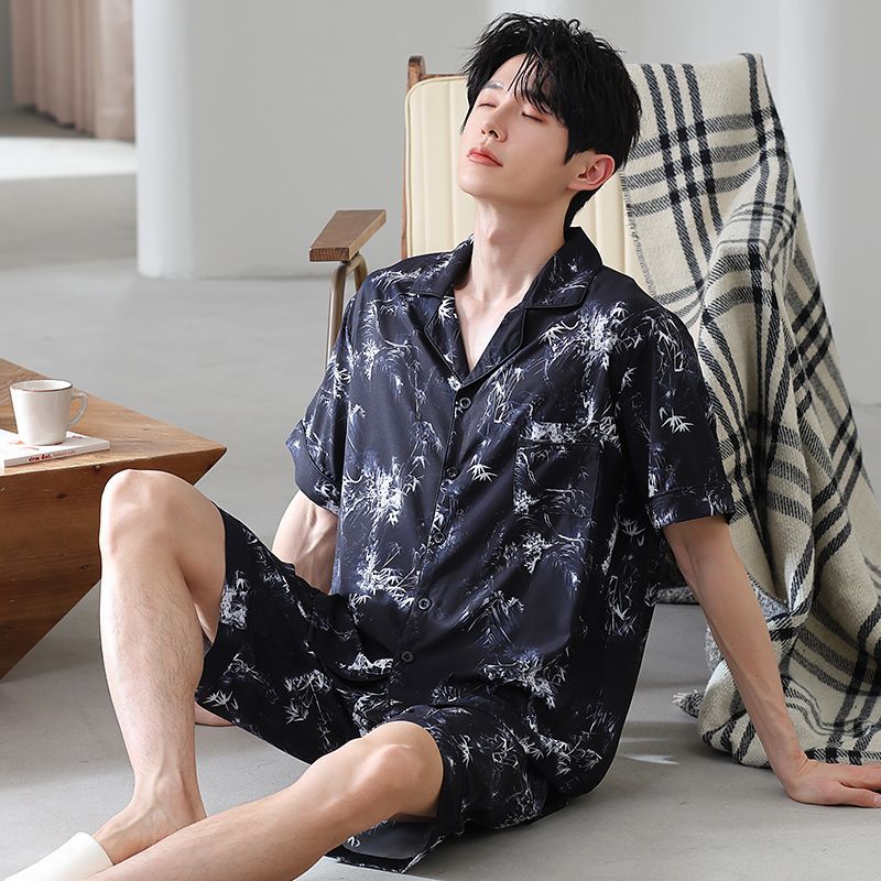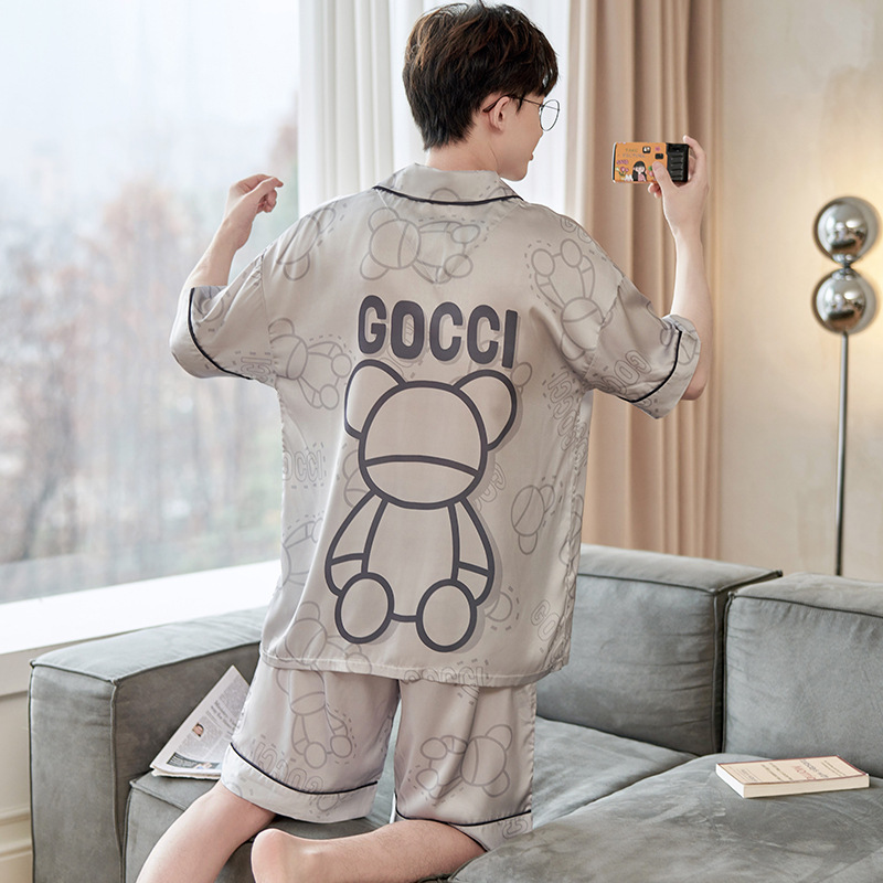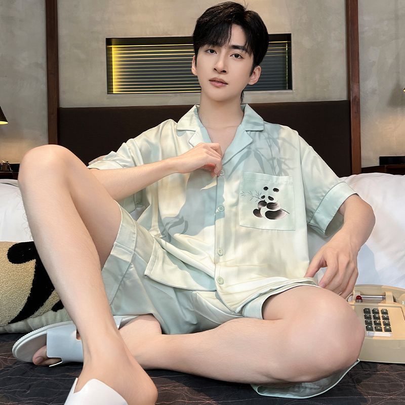남성용 잠옷 여름 얼음 실크 반팔 얇은 고급 실크 여름 스타일 남성용 청소년 학생 및 어린이 정장
