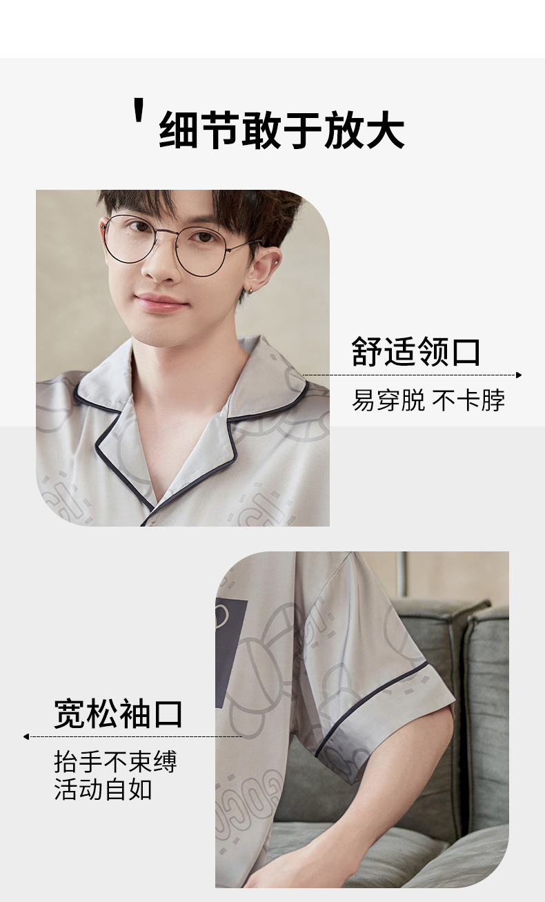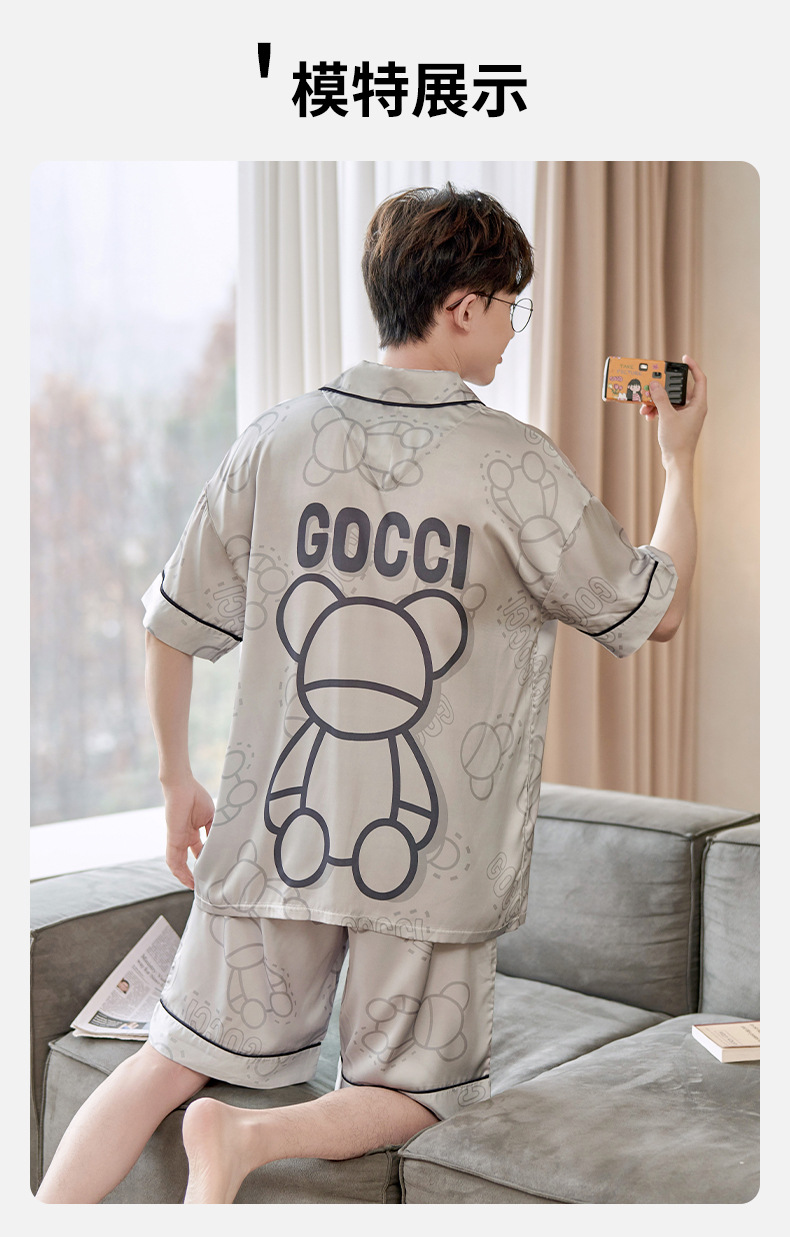 남성용 잠옷 여름 얼음 실크 반팔 얇은 고급 실크 여름 스타일 남성용 청소년 학생 및 어린이 정장스토어 가기