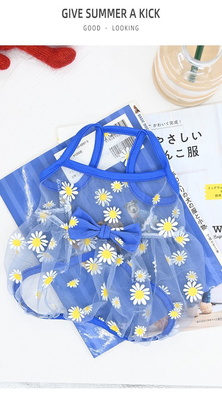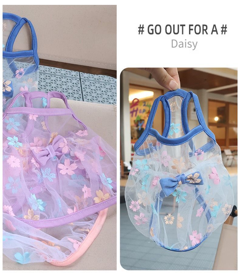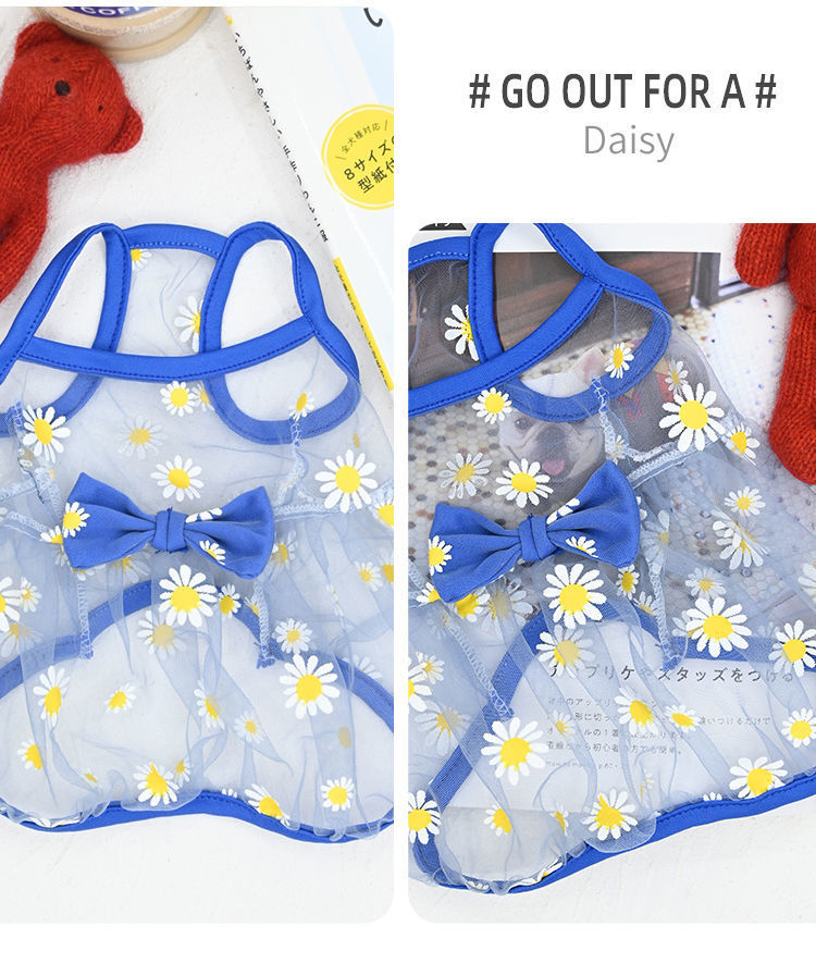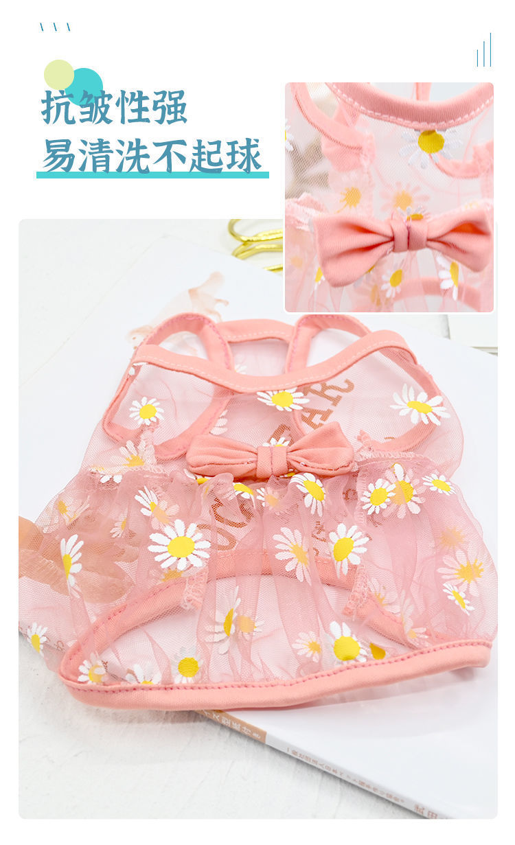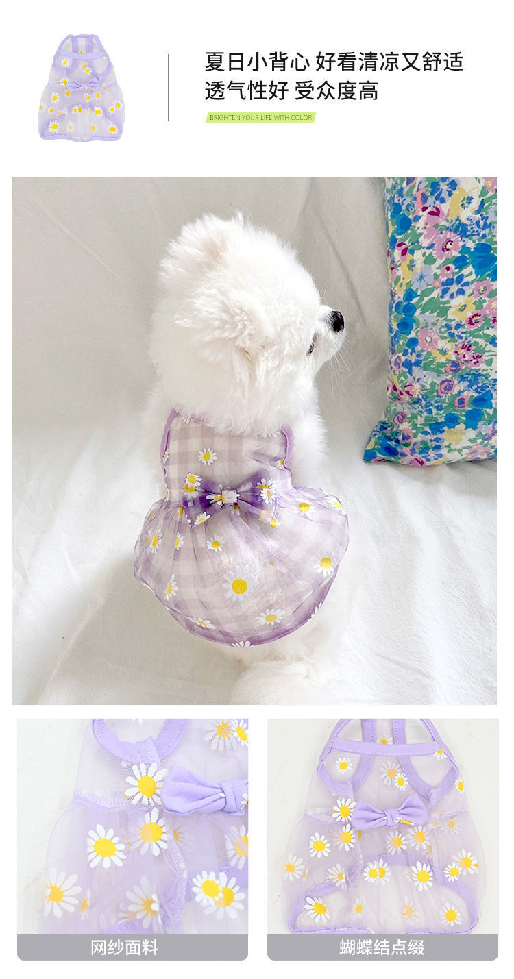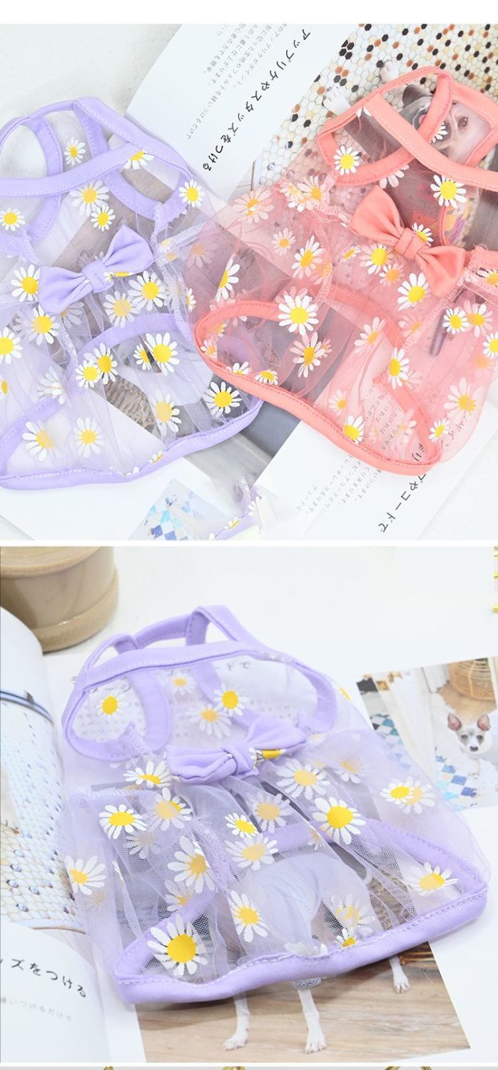 애완 동물 메쉬 데이지 조끼 테디 코기 비숑 봄과 여름 얇은 항모 통기성 피부 친화적인 고양이와 개스토어 가기