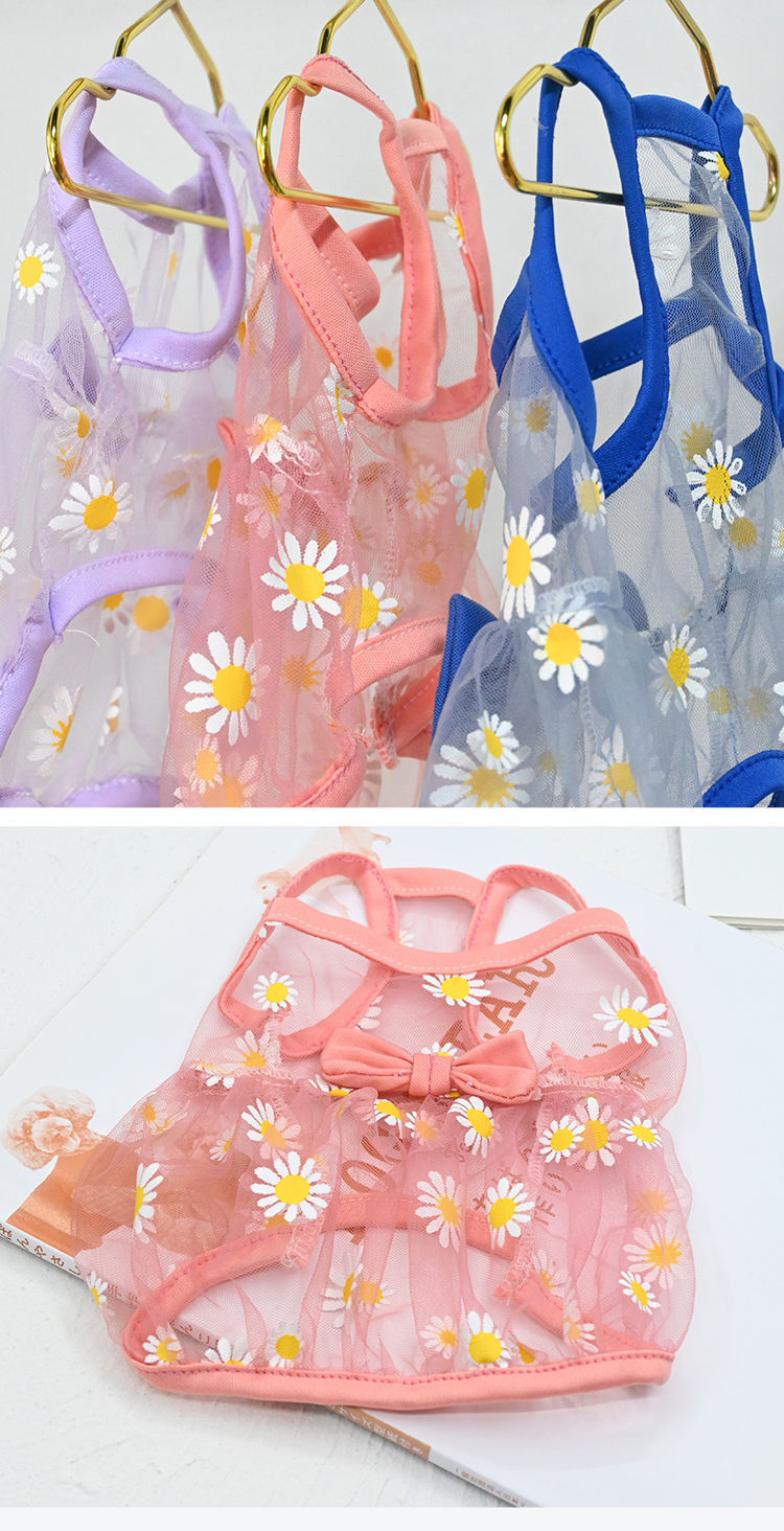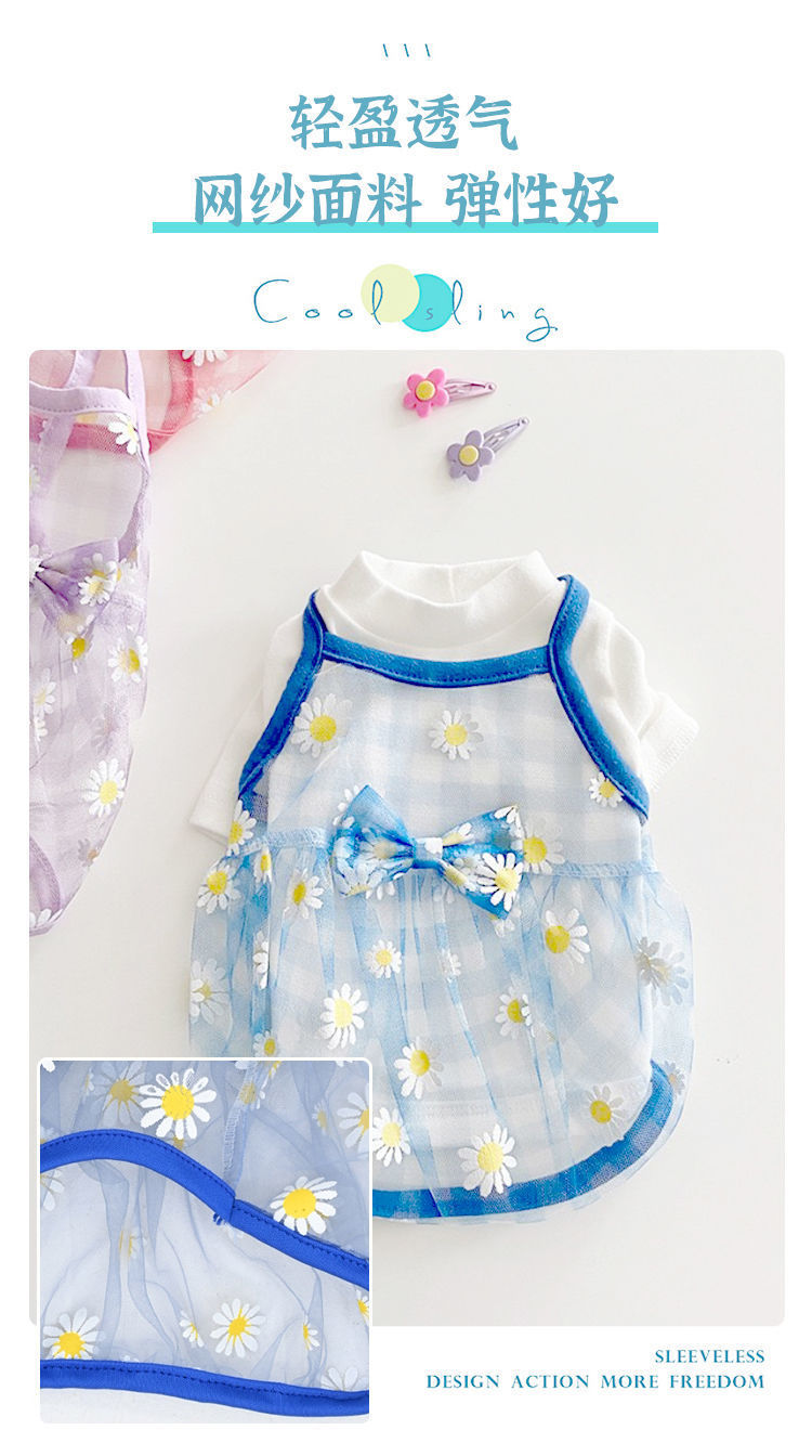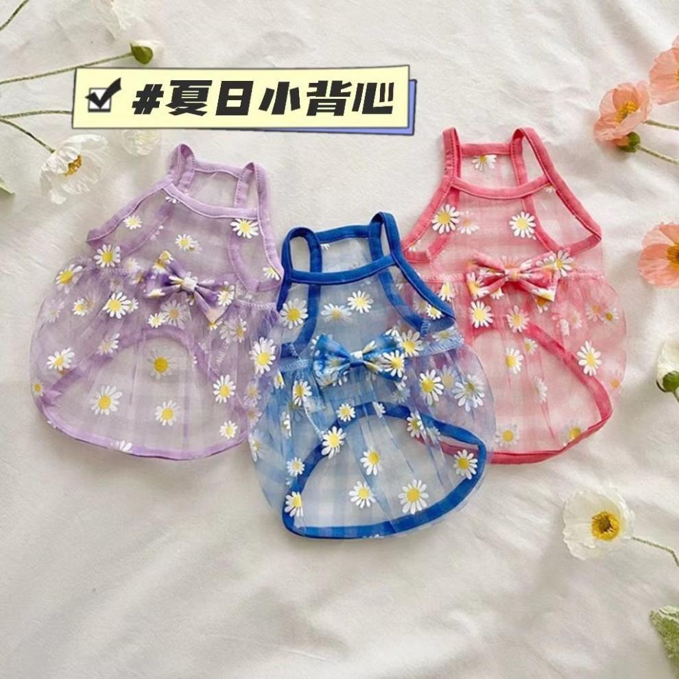 애완 동물 메쉬 데이지 조끼 테디 코기 비숑 봄과 여름 얇은 항모 통기성 피부 친화적인 고양이와 개