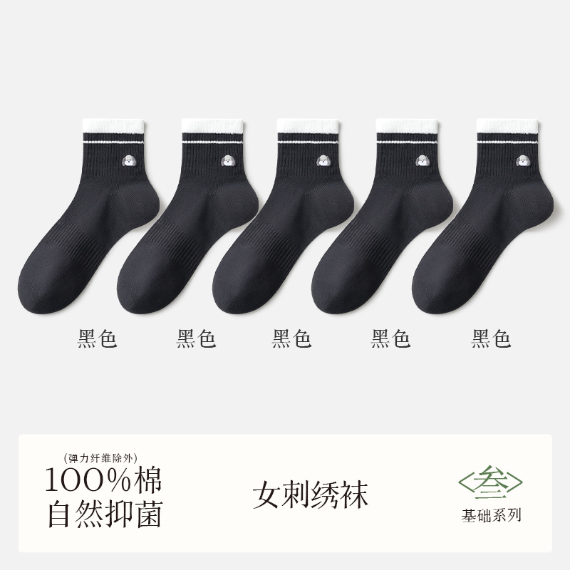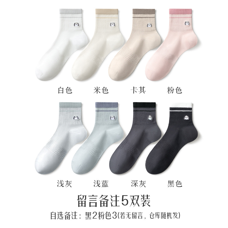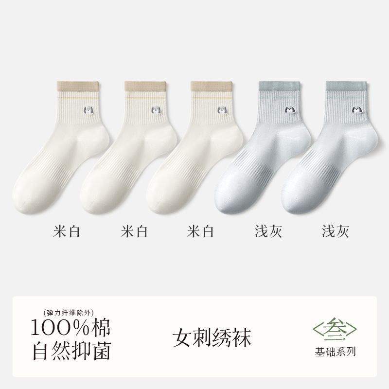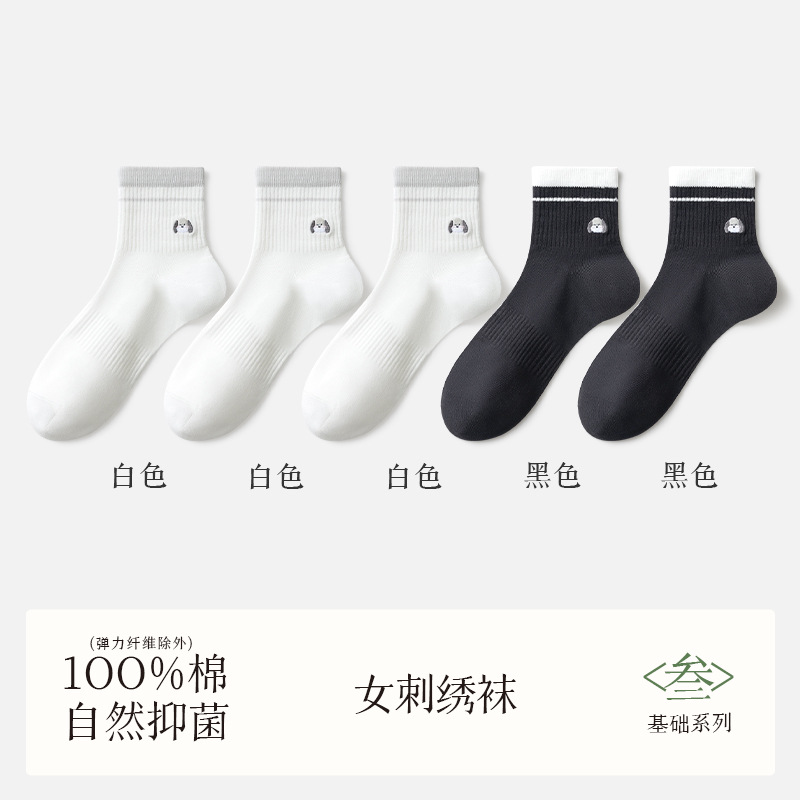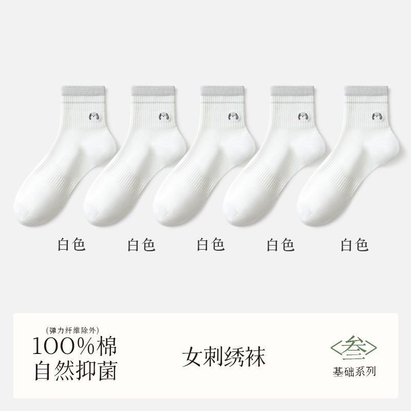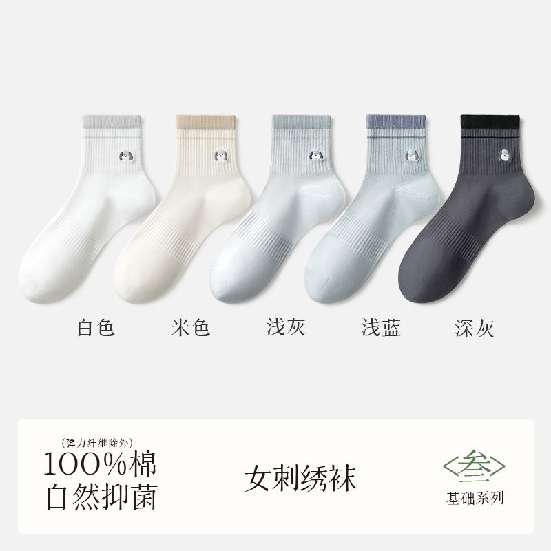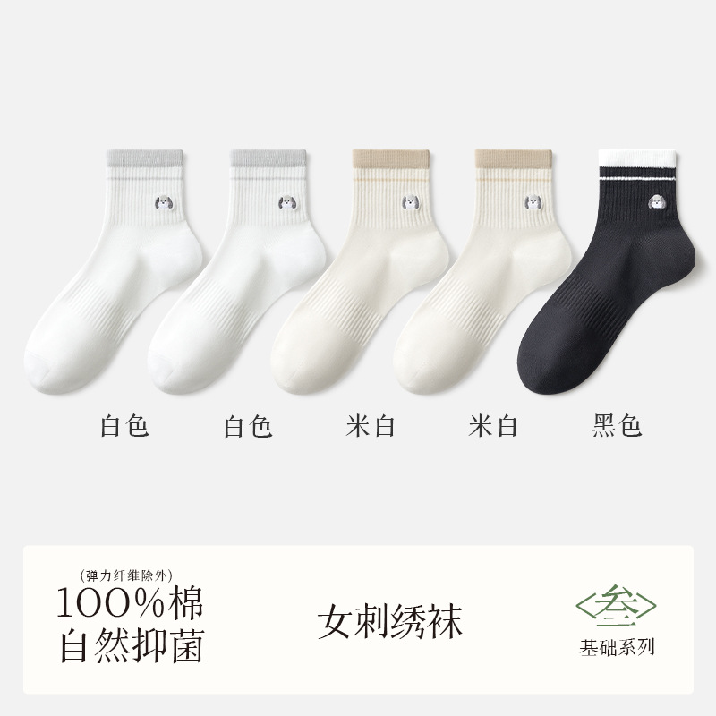 여성용 흰색 양말, 순면, 탈취제 및 땀 흡수 종아리 중간 양말, 여름용 얇은 강아지 자수 귀여운 면 여성용 양말스토어 가기