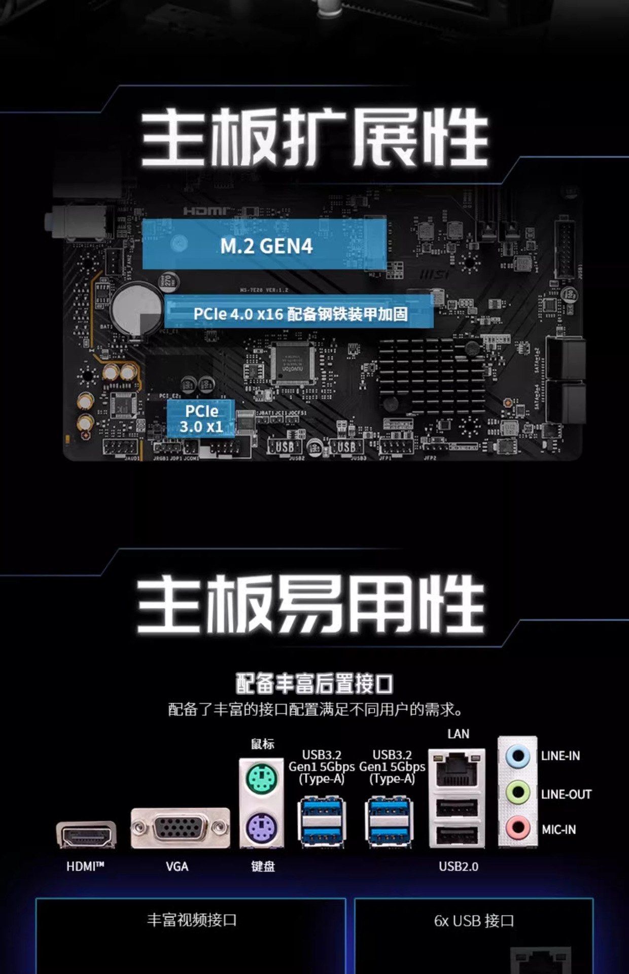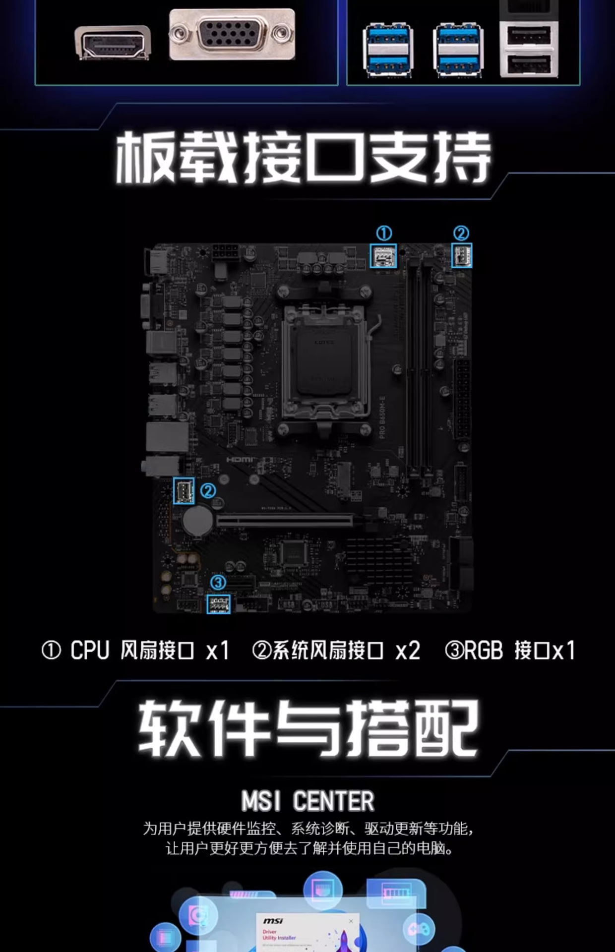 마이크로스타 프로 b650m-e ddr5 amd 프로세서 메인보드는 cpu 9700X/9600X/7500F에 적합합니다.