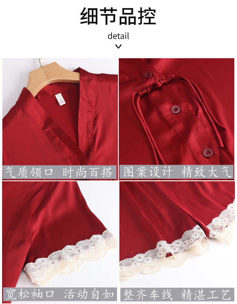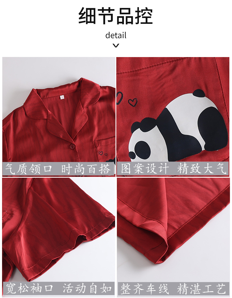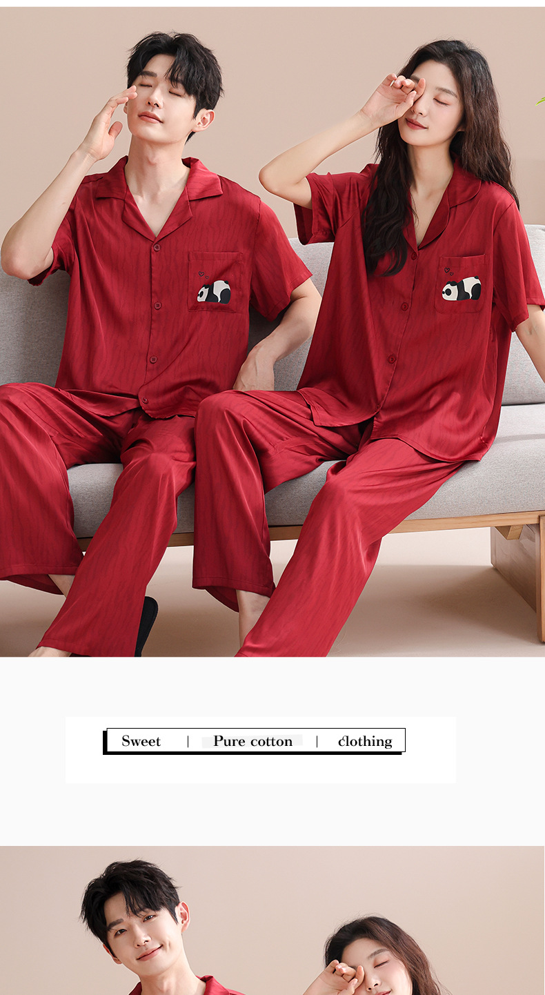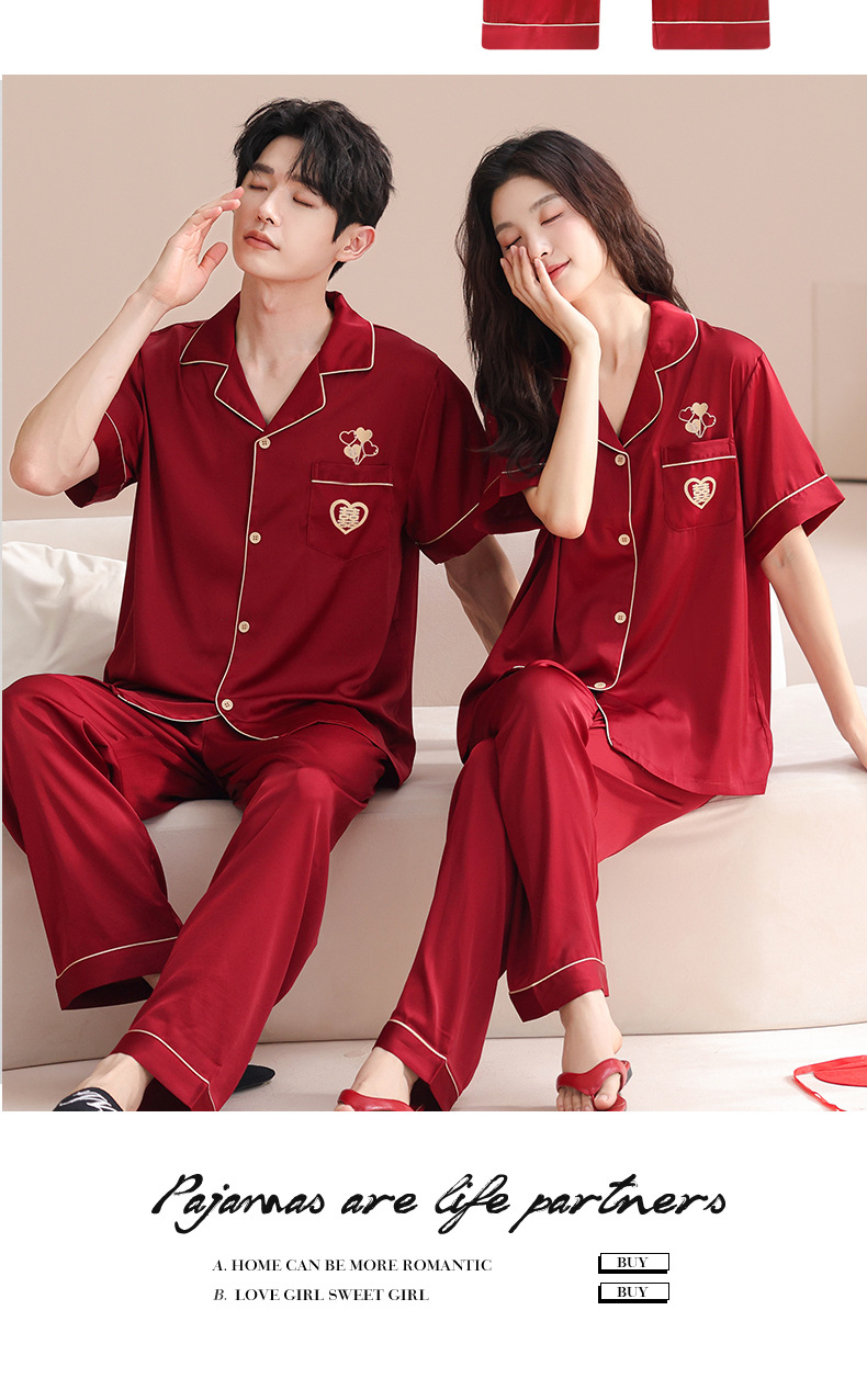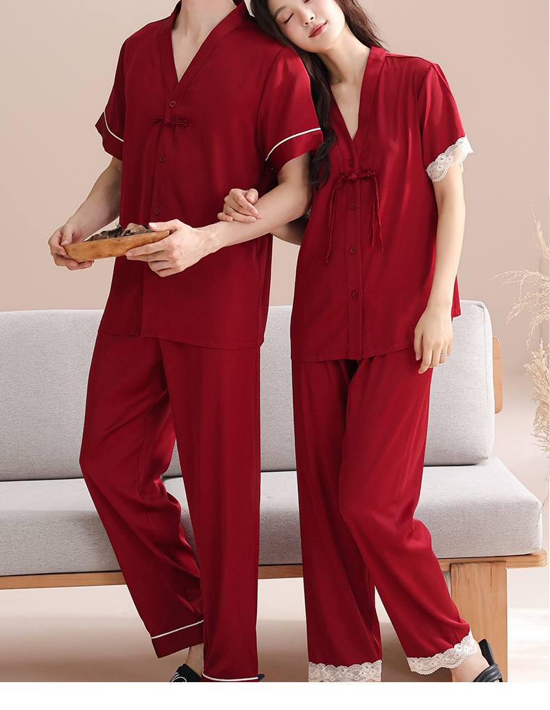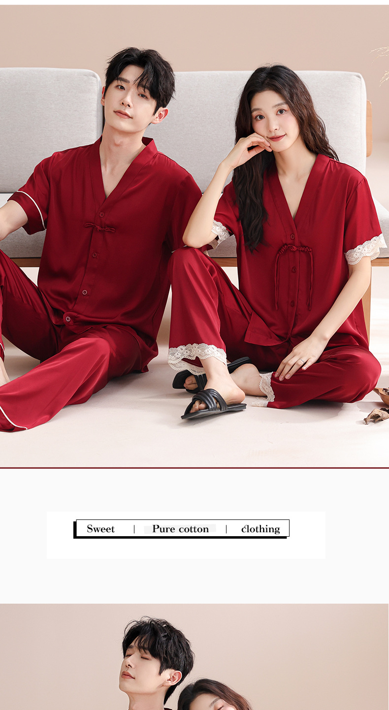 레드 웨딩 커플 잠옷 아이스 실크 반팔 바지 여름 하이 엔드 웨딩 남녀 축제 홈 옷스토어 가기