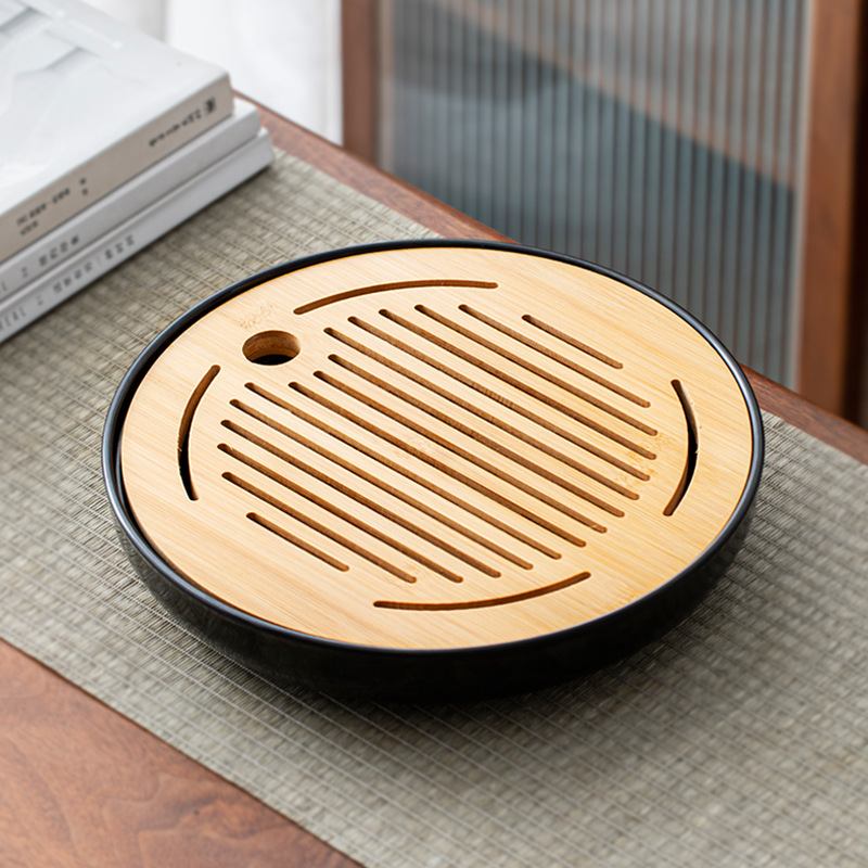 • 둥근 Xiangyun 차 트레이 검정 25*25 물 저장 차 트레이