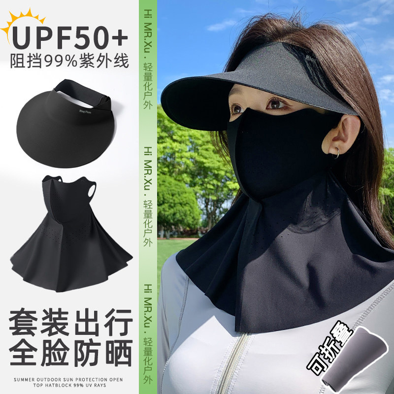 • 라벨이 없는 빈 모자 검정색 + 반 얼굴 목 보호대 검정색