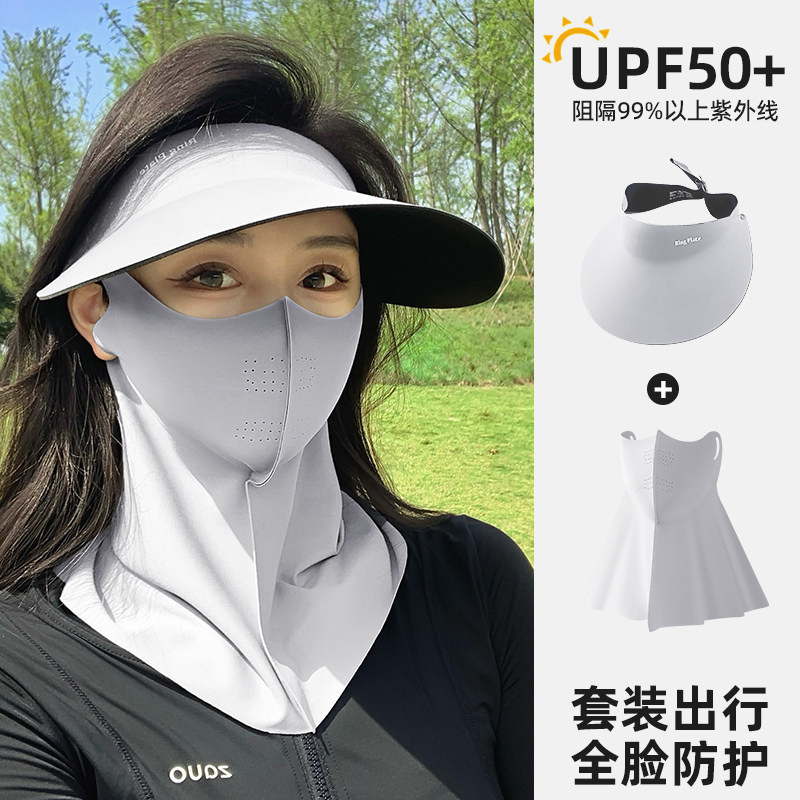 • 라벨이 없는 빈 모자, 라이트 그레이 + 반얼굴 목 보호대, 라이트 그레이