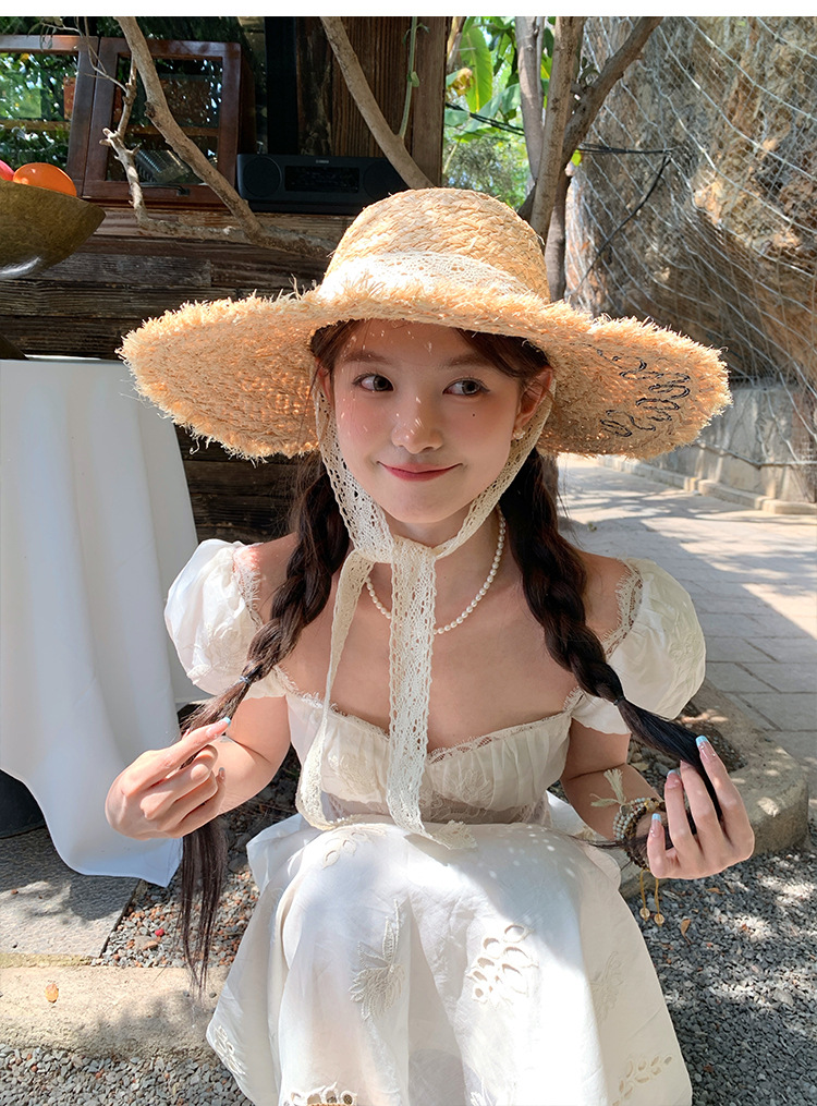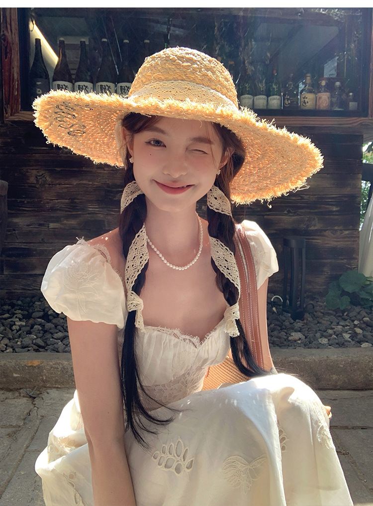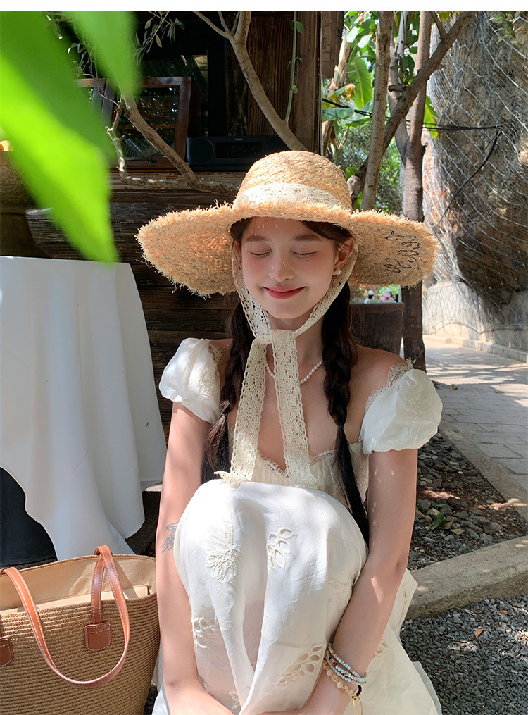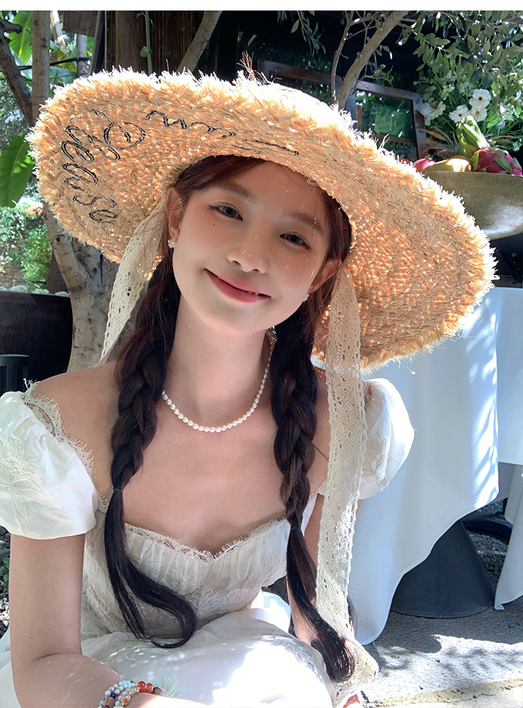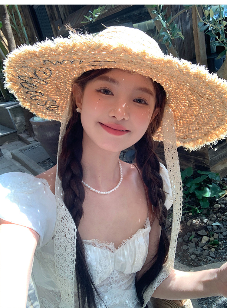 "라피 잔디" 스트랩 밀짚 모자 여성의 여름 큰 브림 양산 모자 해변 휴가 짠 모자스토어 가기